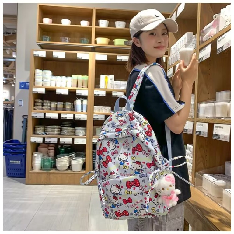 Mochila de Viagem Impermeável de Grande Capacidade com Design Hello Kitty, Adequada para Mulheres
