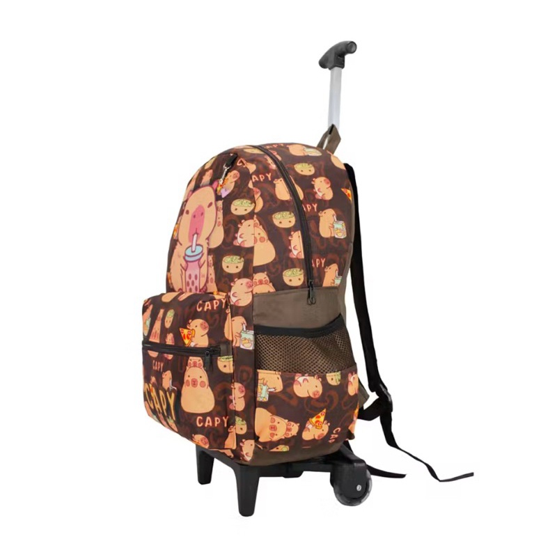 Mochila Escolar Capivara Marrom Rodinha tamanho grande Envio hoje