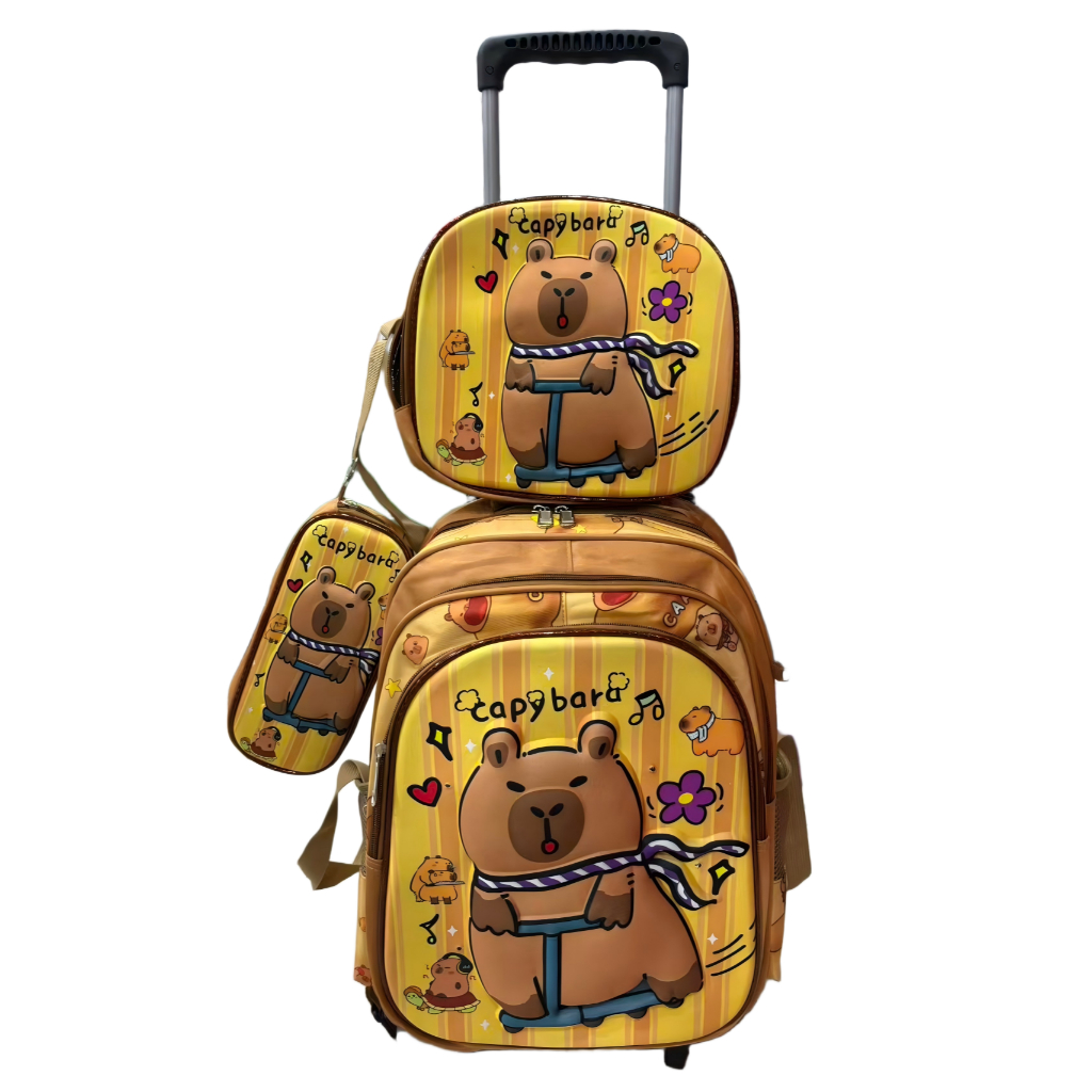 Mochila escolar capybara com lancheira e estojo que pisca