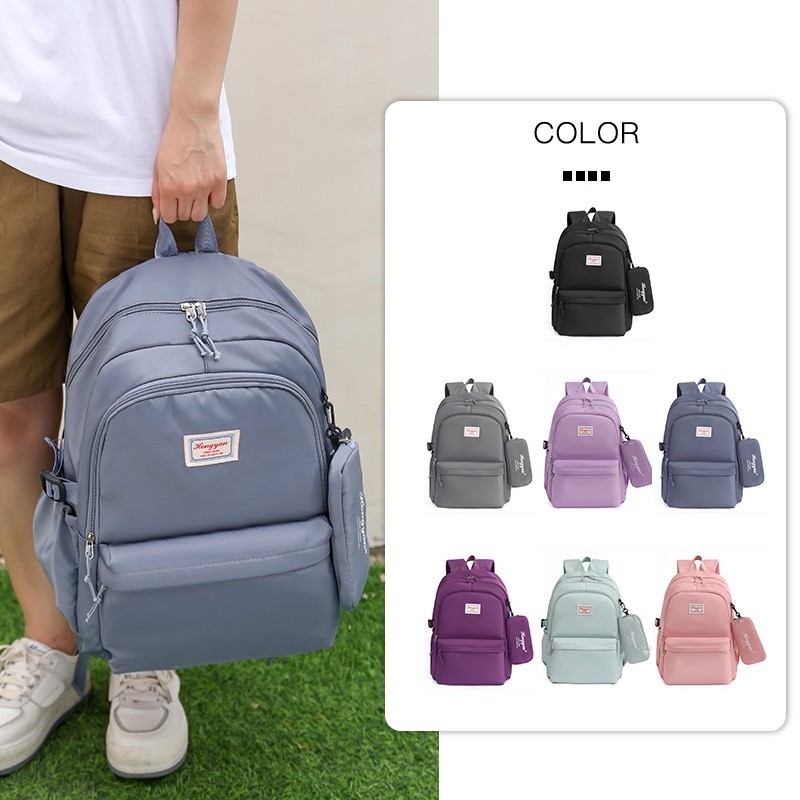 Mochila Escolar Com Estojo De Grande Capacidade Para Estudante Feminina Nylon Impermeavel Apresentação Dos Estojos