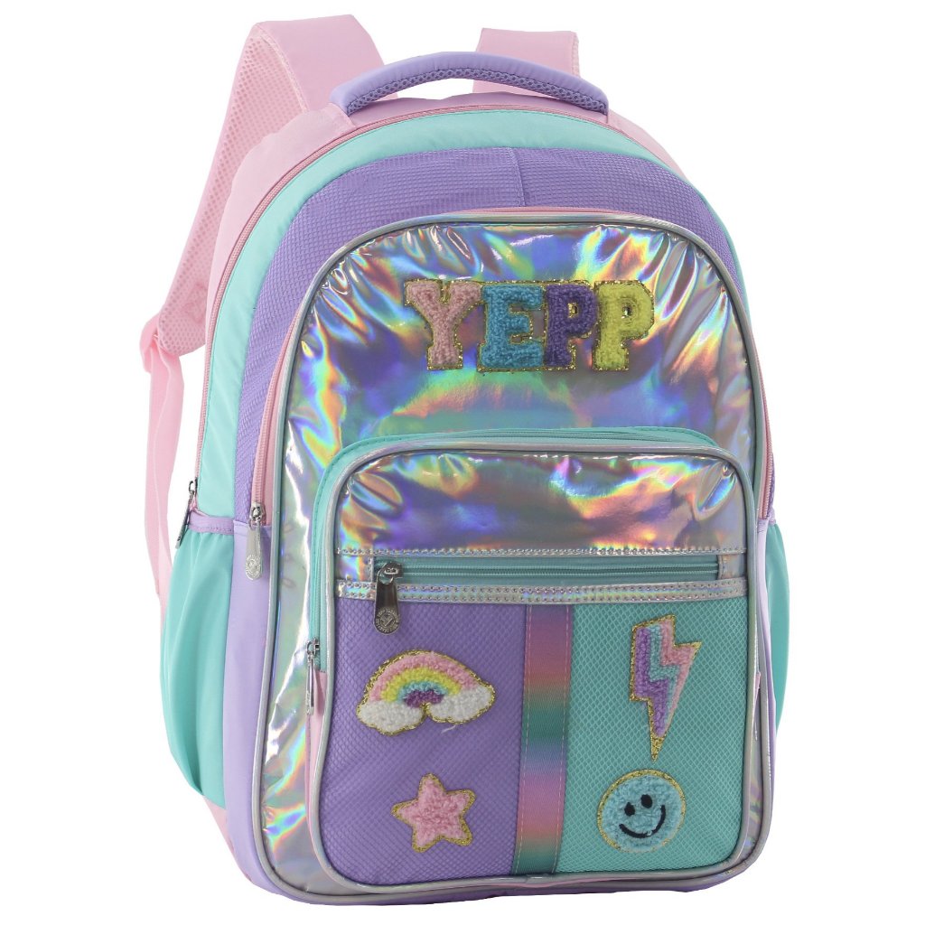 Estilo e organização que combinam com a sua rotina! A Mochila Yepp é perfeita para acompanhar o dia a dia escolar com muito charme e praticidade. Seu design moderno destaca-se pelos detalhes matelassados em formato de corações e acabamentos em cores neon que dão um toque divertido ao visual. Conta com alças acolchoadas ajustáveis e costas reforçadas, garantindo conforto mesmo com o uso prolongado. Seu amplo espaço interno permite levar livros, cadernos e materiais com facilidade. Possui compartimentos externos com zíper e bolsos laterais, ideais para garrafinhas, lanches ou objetos de acesso rápido. O destaque fica por conta da corrente decorativa em tons candy, que dá um toque exclusivo ao modelo. Disponível em cores encantadoras: azul bebê, lilás e preto – todas com acabamento arco-íris que brilha em qualquer ocasião. Escolha a sua favorita e destaque-se com muito estilo! Materiais: Poliéster Medidas: 35x48x18 cm Marca: Yepp