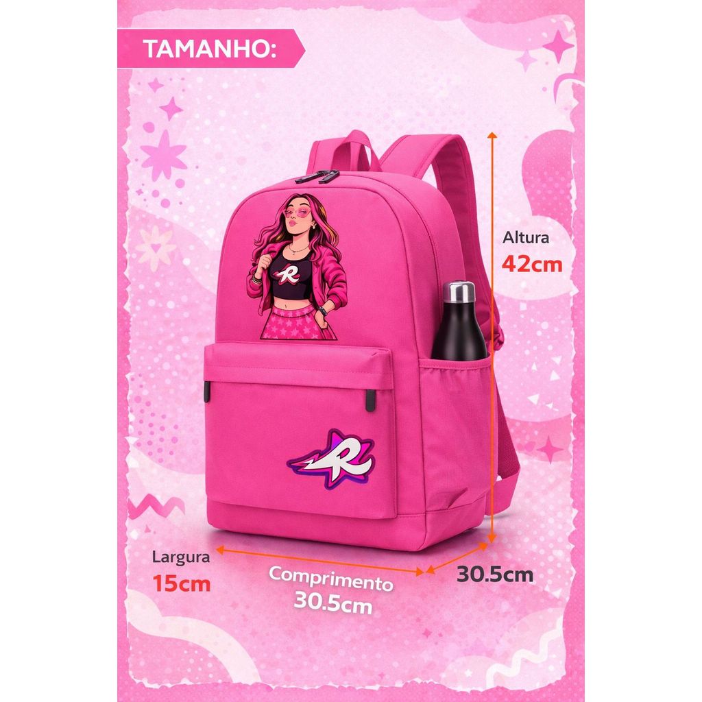 📏 MEDIDAS: ✔ Altura: 42 cm ✔ Comprimento: 30,5 cm ✔ Largura: 15 cm Tamanho ideal para cadernos, livros, estojo, nécessaire e muito mais! ✨ DIFERENCIAIS DO PRODUTO: ✅ Material em nylon resistente ✅ Estampa moderna e exclusiva ✅ Bolso frontal espaçoso ✅ Bolso lateral para garrafinha ✅ Zíper reforçado ✅ Alças confortáveis e ajustáveis ✅ Leve, prática e durável 🎨 CORES DISPONÍVEIS: 🩷 Rosa 🖤 Preta 🎒 Ideal para: ✔ Escola ✔ Cursos ✔ Dia a dia ✔ Passeios 💥 Produto moderno, estiloso e com ótimo espaço interno! 💝 Ótima opção para presentear!