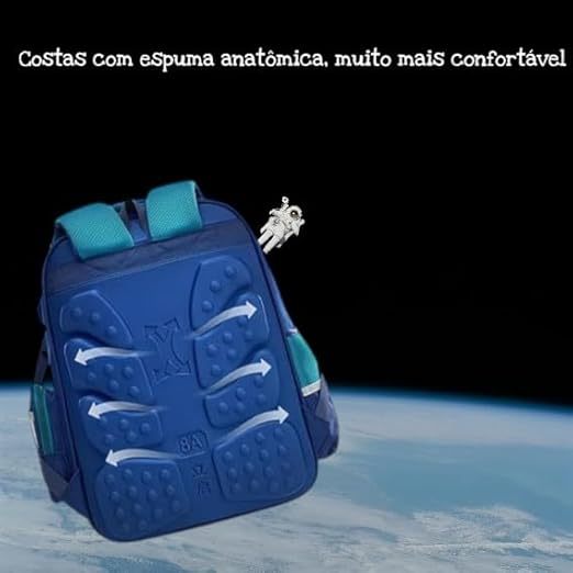 OBS. TEMOS 2 MODELOS DE MOCHILA ASTRONAUTA Escolha o Seu! Descrição do Produto – Mochila Escolar Astronauta 43×30×16 cm + Chaveiro Prepare-se para uma verdadeira jornada espacial com esta mochila escolar premium, perfeita para crianças que adoram astronomia, foguetes e o universo! Com design moderno e divertido, ela combina funcionalidade, conforto e resistência, tornando-se a escolha ideal para a rotina escolar. ✨ Destaques do Produto Tamanho ideal: 43 cm (altura) × 30 cm (largura) × 16 cm (profundidade) Material ABS de alta durabilidade: resistente, firme e de fácil limpeza Design temático espacial: astronauta e planetas em alta definição Acompanha chaveiro exclusivo de astronauta, deixando a mochila ainda mais charmosa Costas acolchoadas e respiráveis: mais conforto e menos transpiração Alças ergonômicas com ajuste, proporcionando melhor distribuição de peso Faixas refletivas de segurança: mais visibilidade no trajeto escolar Vários compartimentos: ideal para livros, estojo, cadernos e garrafa Zíper reforçado
