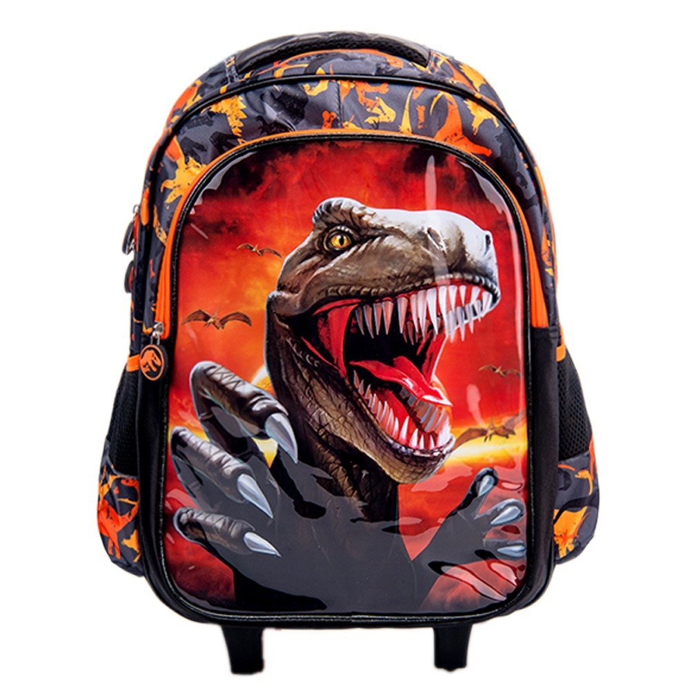 Mochila Escolar Infantil Com Rodinhas Criança Dinos 3D Volta As Aulas