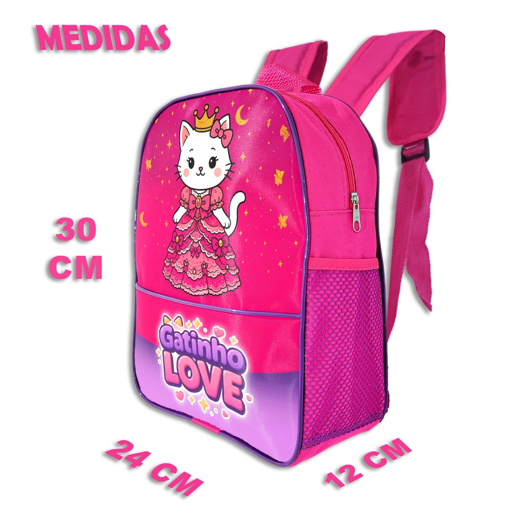 ✨ Mochila Infantil Feminina - Love Gatinho Princesa Com estampa fofa e delicada, a Mochila Infantil Love Gatinho Princesa é ideal para meninas de 2 a 5 anos. Perfeita para creche, escolinha ou passeios, ela une praticidade com muito charme. 🎒 Características do Produto: • Estampa exclusiva Love Gatinho Princesa • Alças ajustáveis • Bolsos laterais em tela para garrafinha ou brinquedinhos • Material resistente à água e fácil de limpar • Costura reforçada para mais durabilidade • Ideal para uso diário de crianças pequenas 📏 Medidas Aproximadas: Altura: 30 cm Largura: 24 cm Profundidade: 12 cm 💡 Uma opção encantadora para presentear ou deixar a volta às aulas ainda mais divertida. Leve, prática e com um visual que conquista!