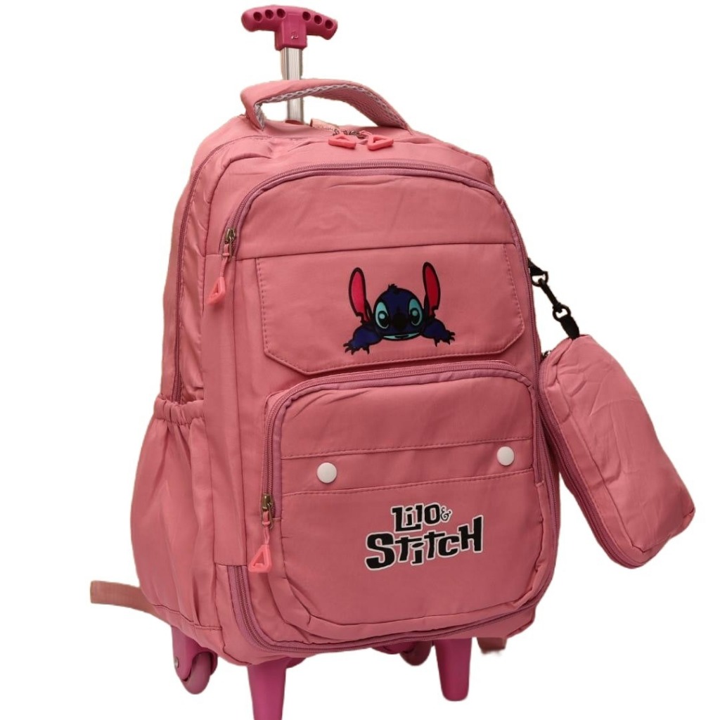 🧒🎒 Mochila Infantil com Rodinhas Stitch Deixe a volta às aulas muito mais divertida com esta linda mochila infantil do Stitch! Ideal para meninas, ela possui rodinhas resistentes e alça retrátil, facilitando o transporte e evitando peso nas costas da criança. Produzida com material de qualidade, é resistente, espaçosa e prática, perfeita para o uso escolar diário. Conta com vários compartimentos com zíper, bolsos laterais e acompanha estojo combinando, trazendo ainda mais organização e estilo. ✨ Destaques do produto: - Estampa divertida do Stitch - Cor rosa , azul, lilas, verde rosa clara delicada - Mochila com rodinhas e carrinho - Alça retrátil ajustável - Compartimentos espaçosos com zíper - Bolsos laterais - Acompanha lancheira - Ideal para escola e passeios 📚 Indicação: uso escolar infantil 🎁 Ótima opção de presente!