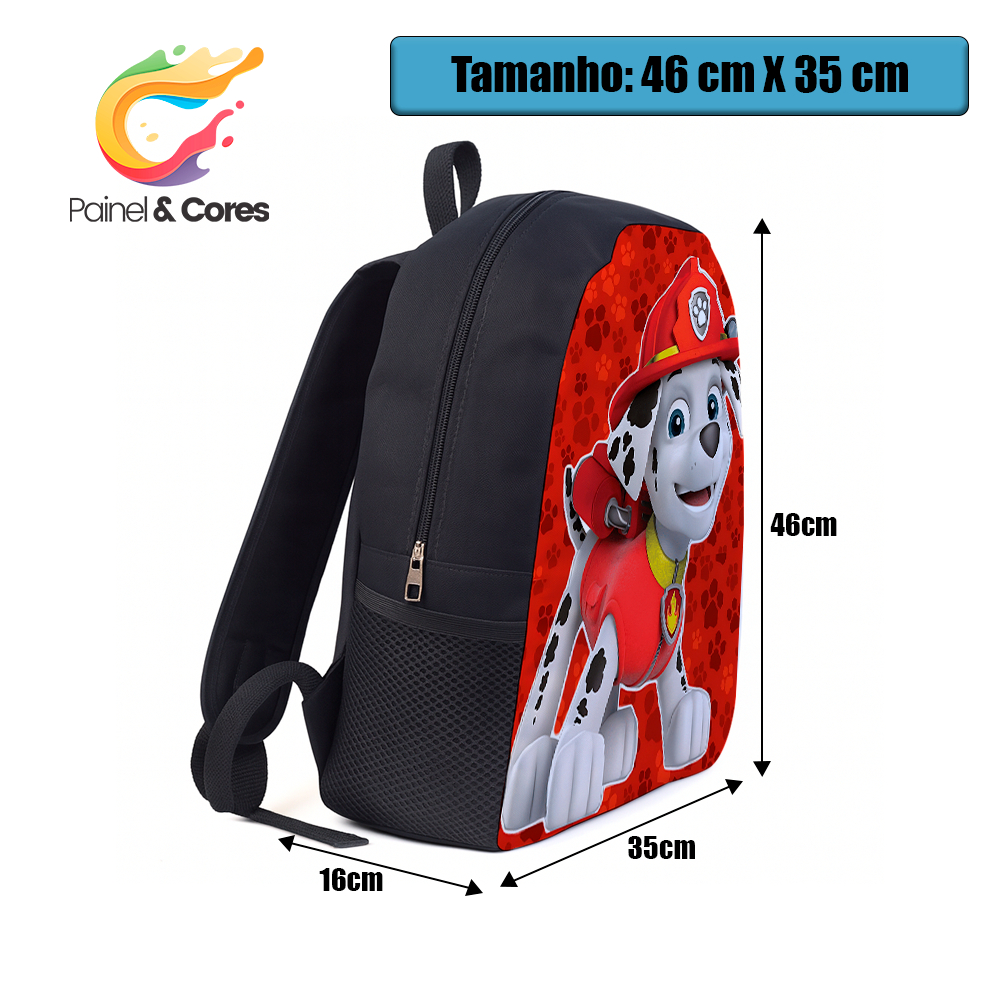 Mochila Escolar Patrulha Cnina Marshall Alça Reforçada de Lona Infantil Juvenil