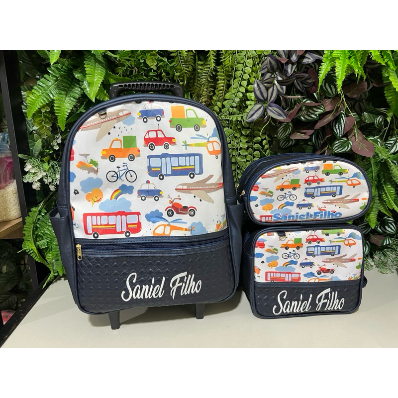 mochila escolar rodinha personalizada tam G pode escolher nome e tema
