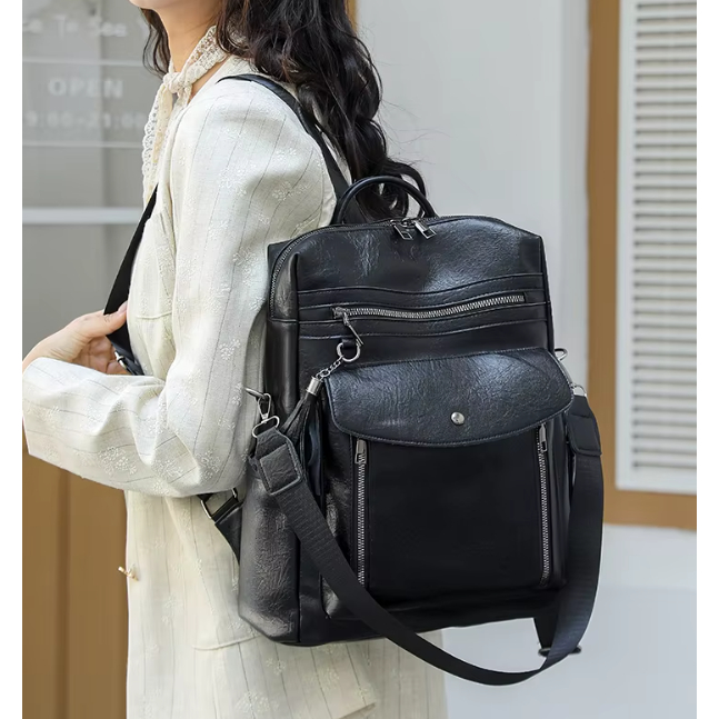 Mochila Feminina Bolsa Casual Grande Capacidade em Couro Sintético com Bolsos
