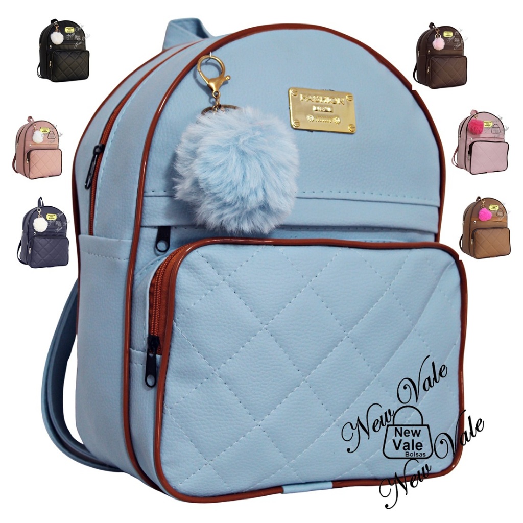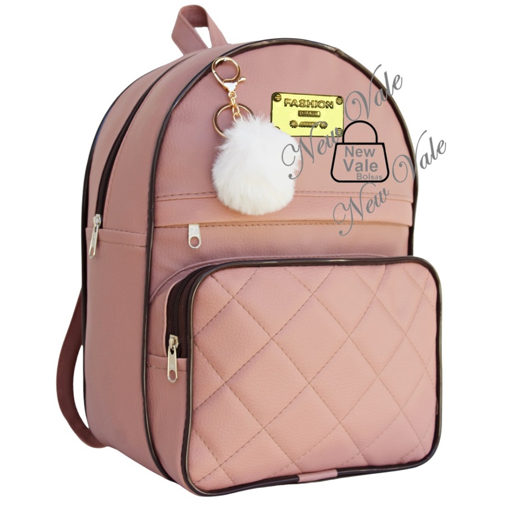 Mochila Feminina Bolsa Mochilinha 3 Repartições Alça Reforçada Escolar Trabalho + Chaveiro Pompom.