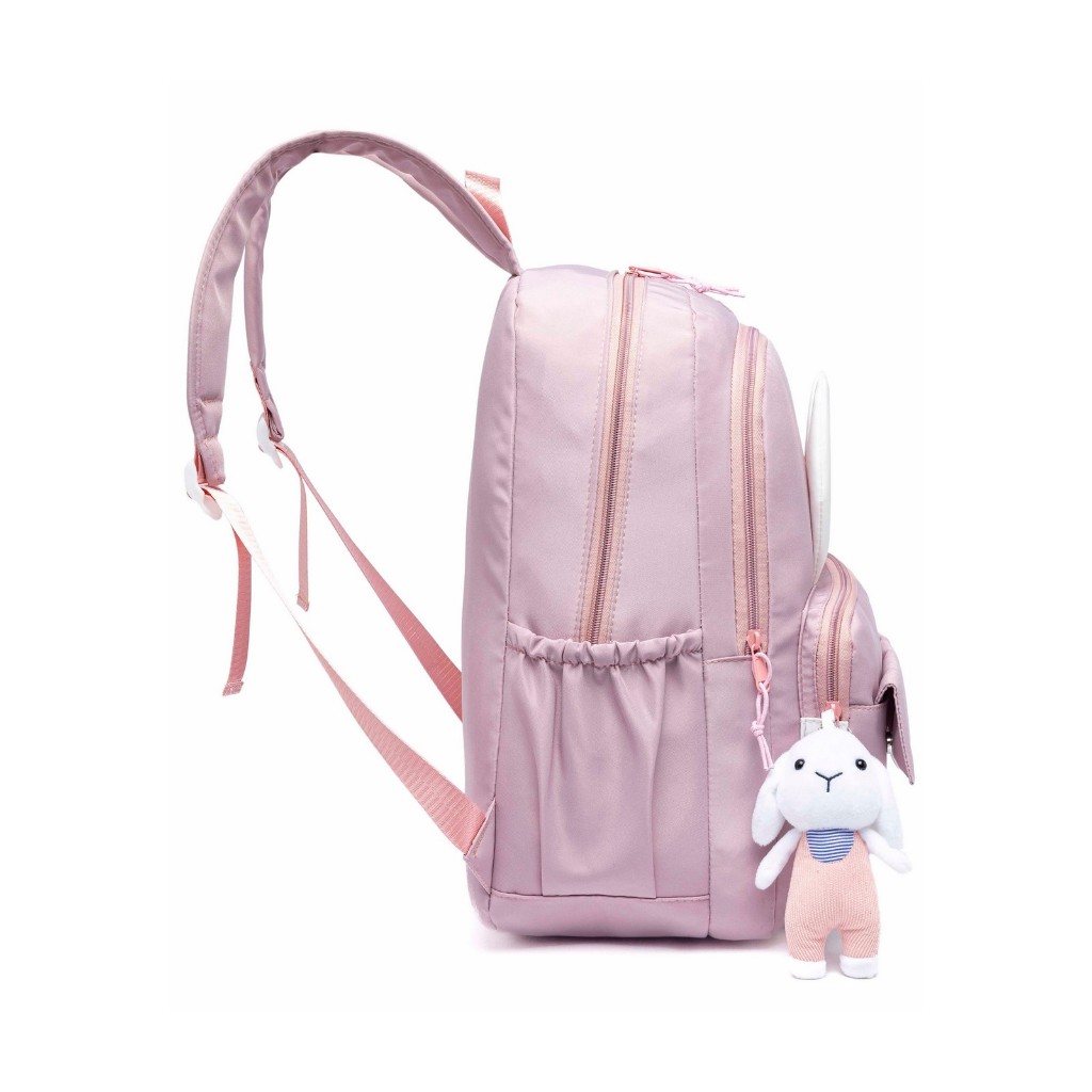 Ficha técnica do produto: - Marca: Polo One - Material do tecido: 100% Poliéster - Medidas (AxLxP): 32 x 15 x 10 - Peso: 0.455g - Capacidade: 5 L Características do produto: - Possui 3 bolsos - 2 Compartimentos laterais para garrafa de 500ml - Fecho de contato - Compartimento principal com amplo espaço interno para cadernos livros e materiais - Espaço para noteebook de 14'' - Alças acolchoadas - Acompanha acessório de pelúcia - Mochila autêntica, resistente e original - Detalhes personalizados de coelho - Tecido resistente a água, suportando uma certa quantidade de água, como leves chuvas e respingos. - Compartimentos frontal para pequenos objetos Cuidados e conservação: - Conservar em local seco e arejado - Embalar objetos com cantos vivos cortantes - Evite carregar excesso de peso - Não utilizar nenhum produto químico para limpeza - Para limpeza, utilize apenas pano úmido ou esponja macia e sabão neutro