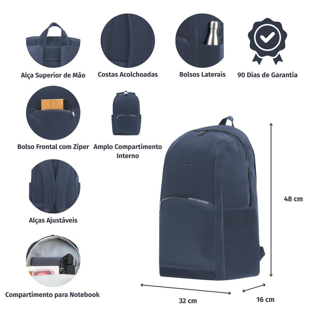 Mochila Feminina Executiva para Notebook Donna Cinza A Mochila Feminina Executiva para Notebook Donna Cinza foi pensada para mulheres executivas, a Linha Donna combina estilo e funcionalidade com um visual clássico. A mochila executiva possui um amplo compartimento em zíper, com bolso interno para acomodar o seu notebook. Feita em material sintético, oferece toque suave, conforto e praticidade, sendo perfeita para expressar personalidade e classe no ambiente corporativo. Ideal para reuniões ou o dia a dia no escritório, a Linha Donna equilibra elegância e funcionalidade. Diferenciais: - Porta Notebook - Alça superior de mão - Costas acolchoadas - Alças traseiras ajustáveis - Bolso frontal para pequenos itens - 2 bolsos laterais para garrafas Disponível nas cores: Cinza, bege e preto Compartimento para Notebook: Compartimento para Notebook Está mochila conta com porta notebook para você conseguir transportar seus equipamentos com mais segurança Especicações: Marca: Bagaggio Rodas: Sem Rodas Peso (kg): 0,78 kg Faixa Etária: Adulto Material: Poliéster Dimensões: 48 x 32 x 16 cm Atributos: Para notebook Tamanho Mochilas: Mochila Grande Cor: Cinza Capacidade (L): 24,5 L Capacidade Mochila (L): 20 a 30 L Marca: Bagaggio Gênero: Feminino Tipo de mochila: Tipo de mochila Bateria: Não Departamento: Feminina Número do modelo: 0231433178001 Estilo do produto: Mochila Feminina Executiva Característica 2: Porta Notebook Característica 3: Costas acolchoadas Garantia: 3 meses
