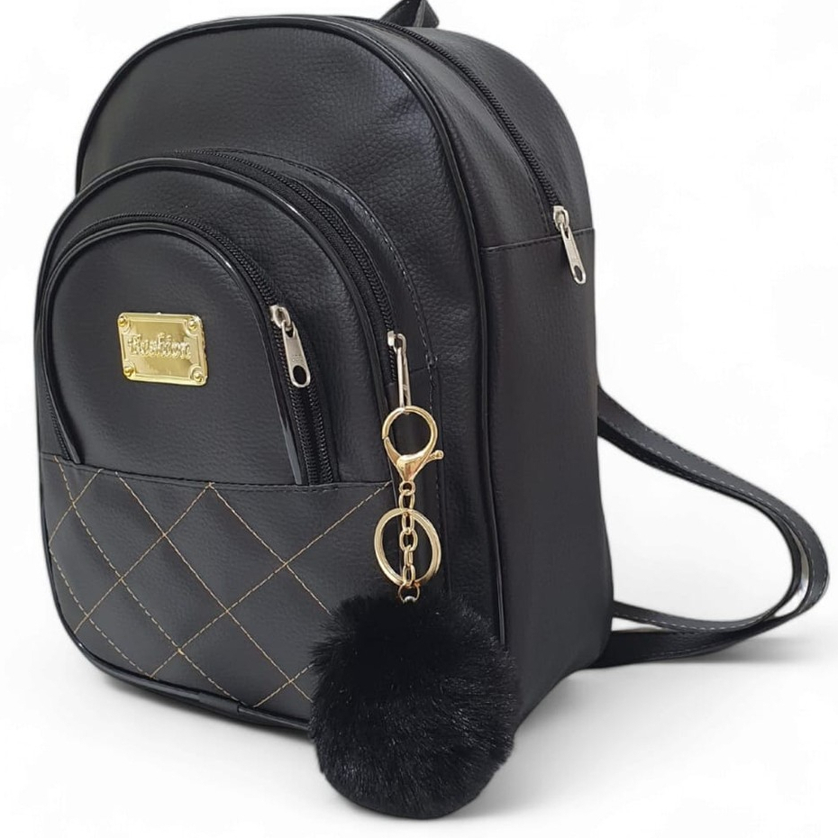 Mochila Feminina Preta Bolsa Mochilinha Escolar Moderna + Chaveiro Lindo