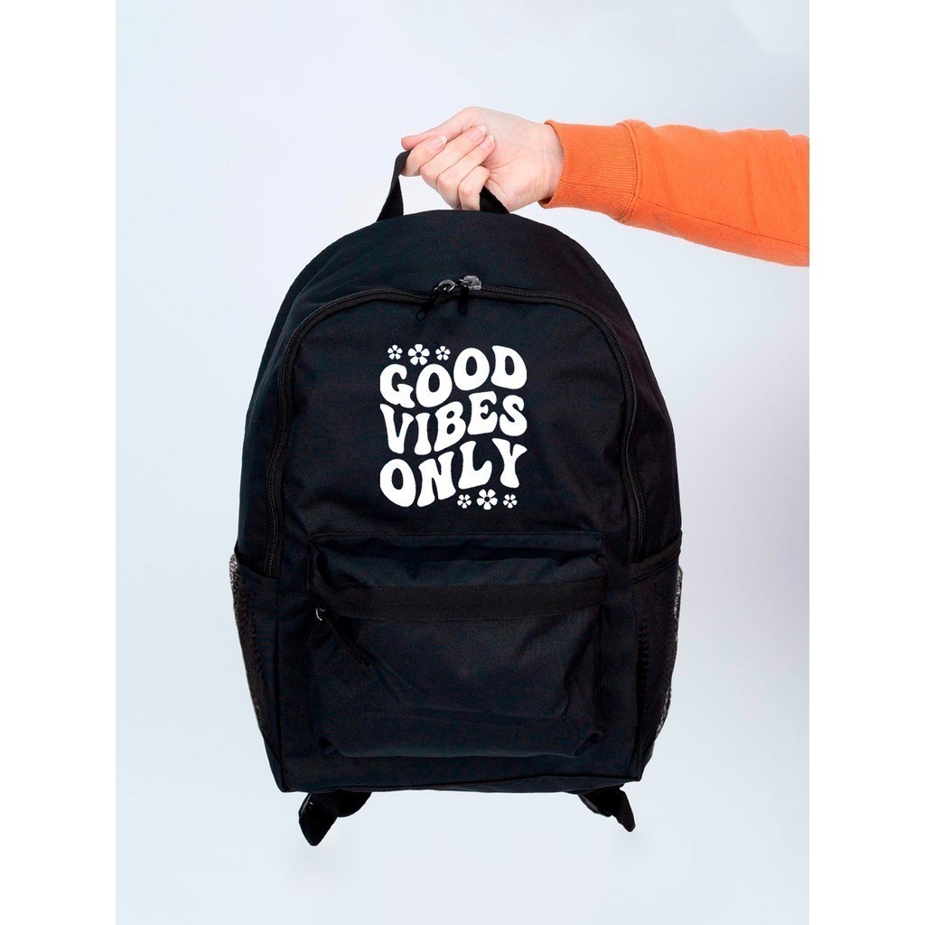 Mochila GOOD VIBES Preta Escolar Faculdade Casual Espaçosa Alta Qualidade