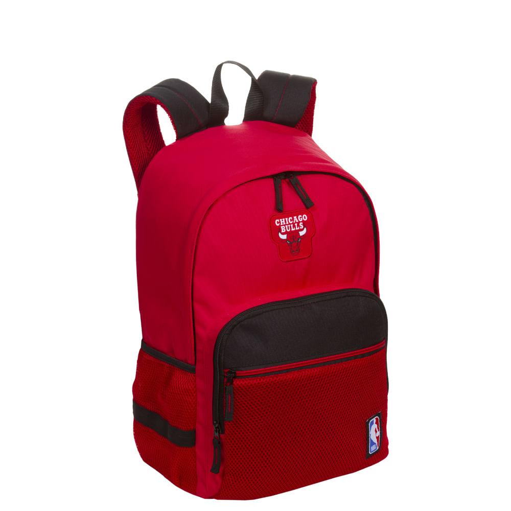O vermelho marcante e o bordado com o famoso touro, símbolo do Chicago Bulls, se destacam nesta mochila que traz outro time lendário da NBA. O modelo tem dois bolsos laterais, e dois bolsos frontais. Possui a Altura: 46 Cm - Largura: 30 Cm - Profundidade: 18 Cm - Peso: 0,3 KG - Capacidade Total: 25 L