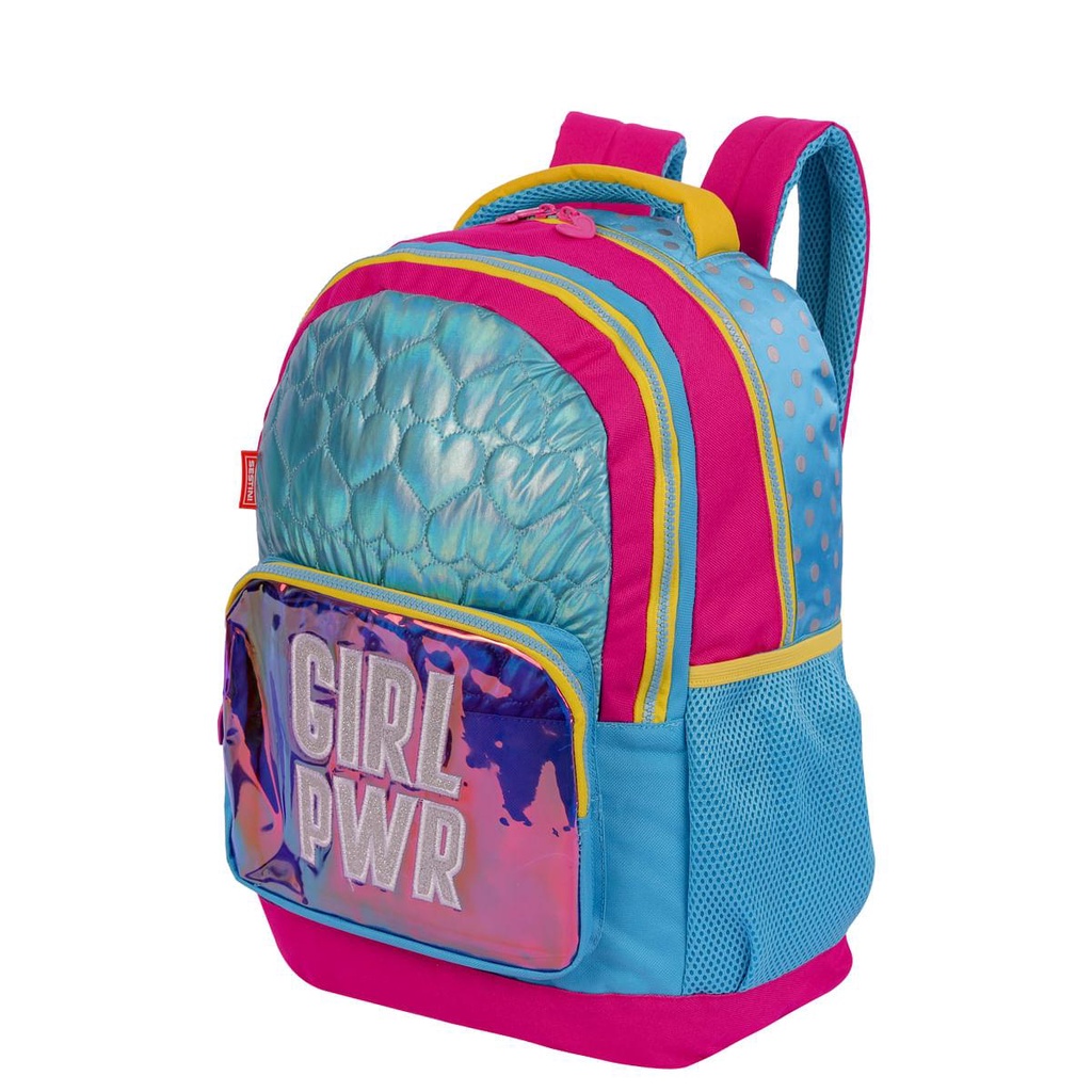 Uma mochila com atitude em cada detalhe! Ela possui alças de costas reguláveis espumadas, para o ajuste ideal e confortável. Com um compartimento amplo, bolsos laterais em redinha e um grande bolso frontal transparente, é possível guardar o material escolar e demais pertences de forma separada. Os puxadores em formato de coração dão um toque a mais de personalidade. Possui a Altura: 42 Cm - Largura: 33 Cm - Profundidade: 16 Cm - Peso: 0,4 KG - Capacidade Total: 22 L