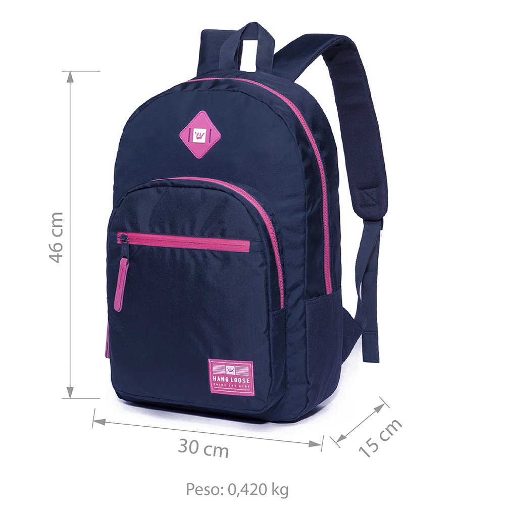 📌CARACTERISTICAS: • Mochila Hang Loose Modelo Waki 100% Original; • Confeccionada em Tecido 100% Poliéster e Forro 100% poliéster de alta resistência; • Detalhes em P.U; • Zíper e Detalhes na cor rosa; • Alça de mão reforçada e personalizada • Alças ajustáveis e ergonômicas; • Divisórias internas; • Logo personalizado; • Etiquetas personalizadas; • Puxadores personalizados; • Bolso principal com amplo espaço interno; • Possui bolso frontal com compartimento para pequenos objetos, caneta e fechamento em zíper • Bolsos laterais telados para armazenamento de garrafa de água; • Compartimento para notebook de até 15,6"; • Mochila autêntica, resistente e original 📝FICHA TÉCNICA: • Marca: Hang Loose • Modelo: Waki • Material: Poliéster e Detalhes em P.U • Compartimento para notebook 15,6". • Medidas (AxLxP): 46x30x15 cm • Peso: 500g • Capacidade: 20,5L • SKU: HL1382Z 📌 CARACTERISTICAS ESTOJO: • Estojo Hang Loose Waki • Estojo com 1 compartimentos para canetinhas, lápis; borracha, etc • Logos e puxadores personalizados com detalhes em camurça 📝 FICHA TÉCNICA ESTOJO: • Modelo: Waki • Marca: HANG LOOSE • Cor: Azul /Rosa • Material: 100 Algodão • Medição (A*L*P): 11x19x8 cm • Peso: 0,050g • Capacidade:1,70L • SKU: HL1382Z ⚠ CUIDADOS DE CONSERVAÇÃO: Evite carregar excesso de peso Embalar objetos com cantos vivos cortantes Para limpeza, utilize apenas pano úmido ou esponja macia e sabão neutro. Não expor a luz do sol para secar Não utilizar nenhum produto químico para limpeza Conservar em local seco e arejado ❓ QUEM SOMOS? A Oh My Bag, varejo constituído para a revenda de Mochilas, Bolsas e Malas de Viagem, vem se especializando no varejo online e se tornando referência em qualidade e confiança. Com abrangência em todo território nacional, a Oh My Bag com centro de abastecimento próprio e estoque permanente. Isso tem tornado a loja um sinônimo de tranquilidade na compra e agilidade na entrega. • Emitimos Nota Fiscal para Pessoa Física e Jurídica (CNPJ) • Produtos a pronta entrega
