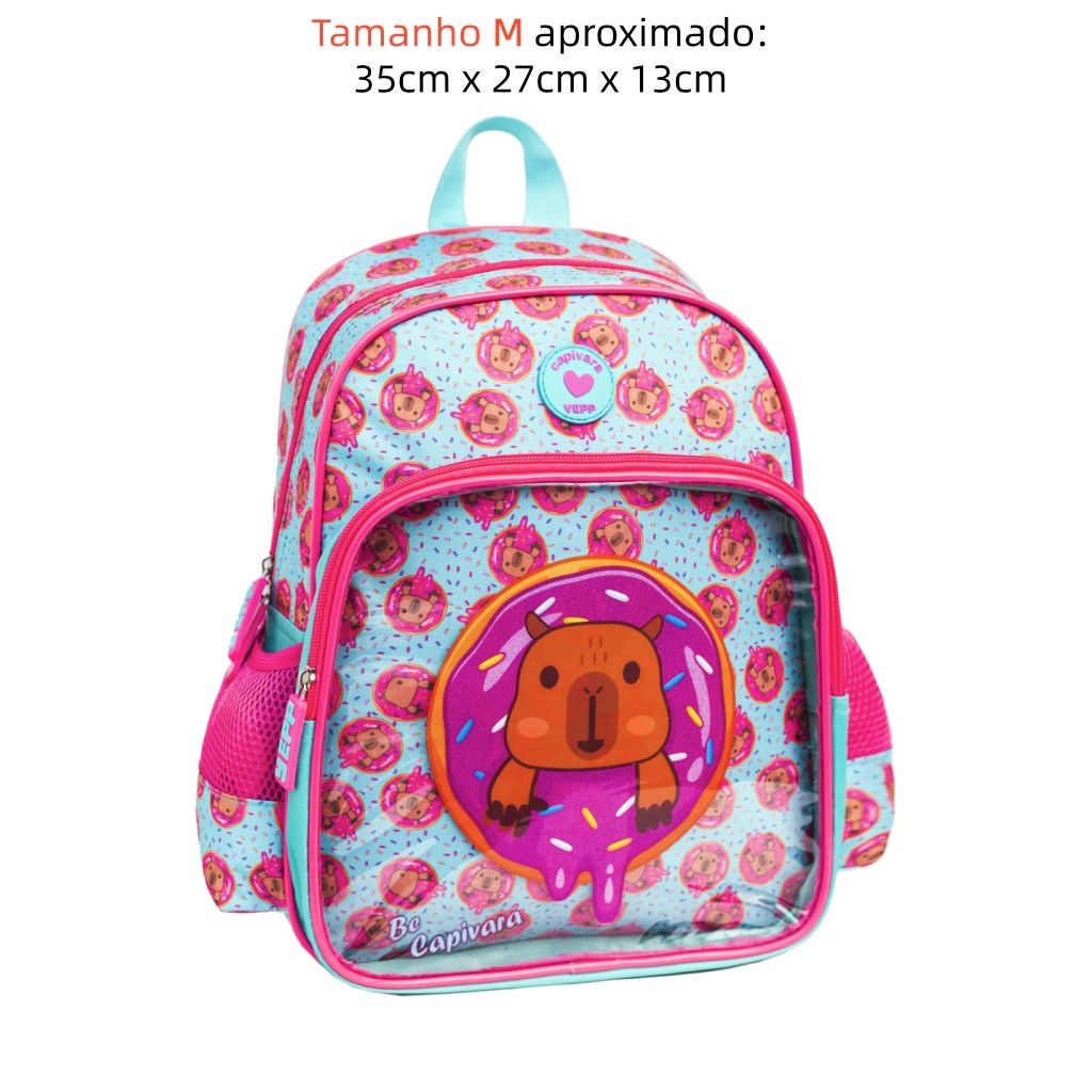 Mochila Infantil Costas Capivara E Rosquinha Frente em PVC Tamanho Médio Escolar 2026
