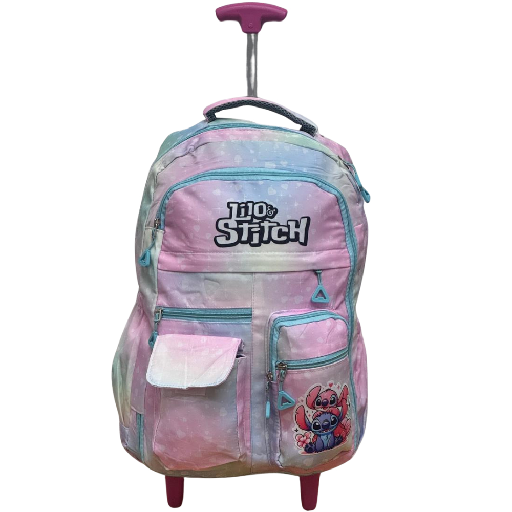 Mochila infantil e juvenil com Rodinha Stich Estampado Escolar de Nylon Impermeável Infantil Stich