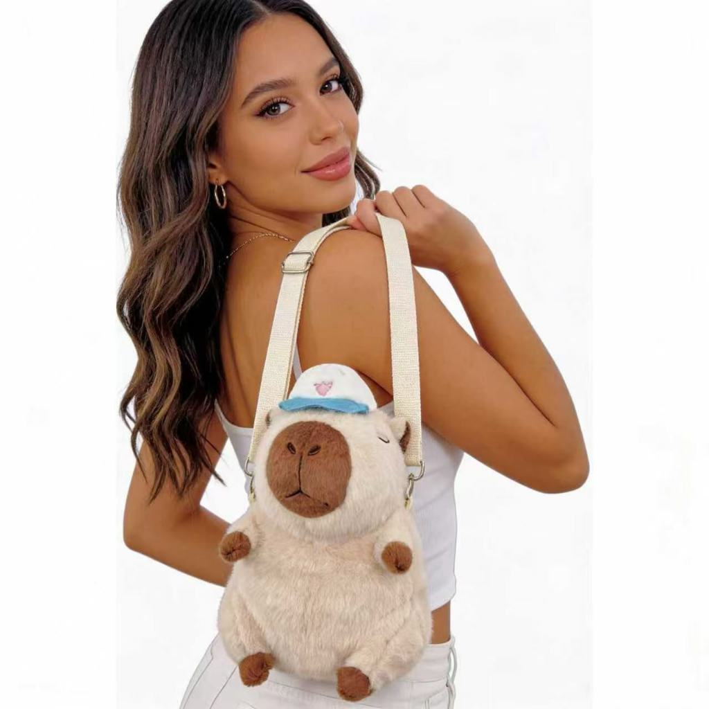 Mochila Infantil Feminina em Pelúcia Capivara Fofa e Aconchegante-Capivara fofa