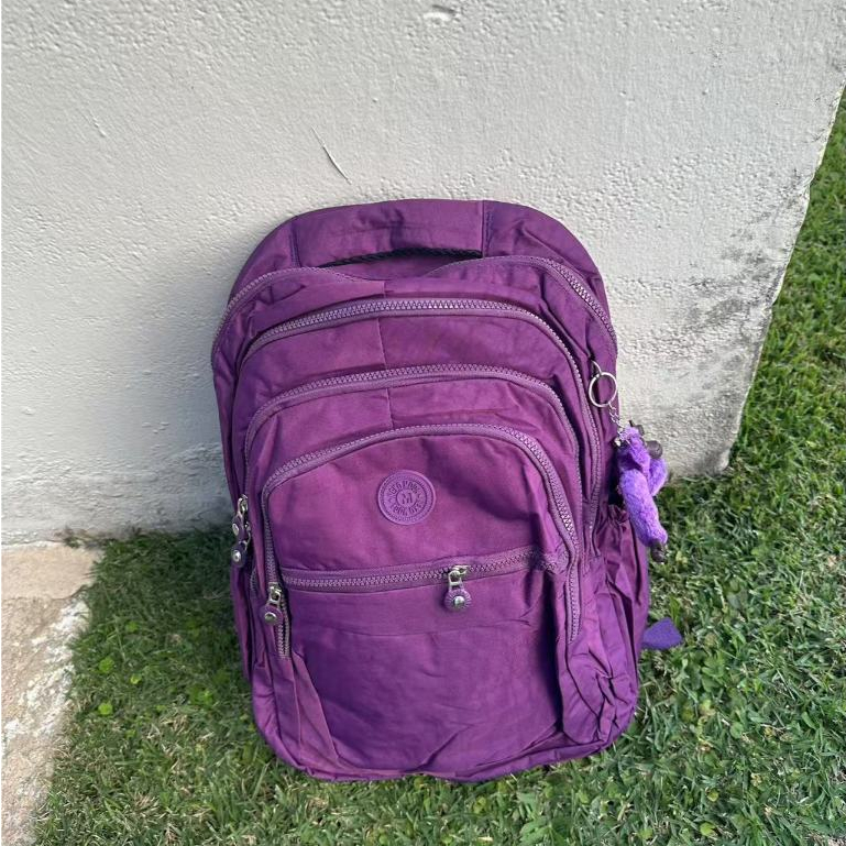 Mochila Inspirada 5 zíperes Grande Diversas cores com chaveiro macaco