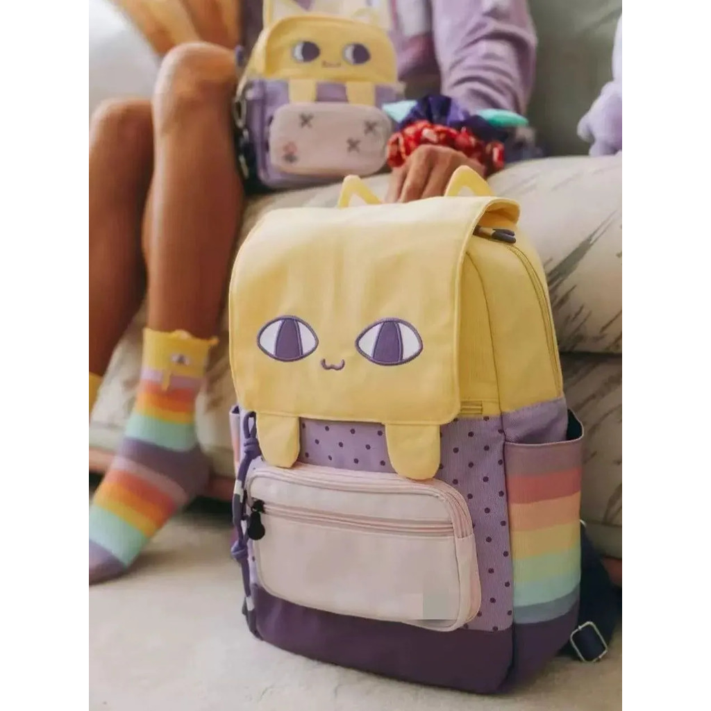 Mochila leve de gato amarelo pequeno, estilo versátil feminino, Y2k Atmosphere, dois desenhos animados, doze e legal, lo