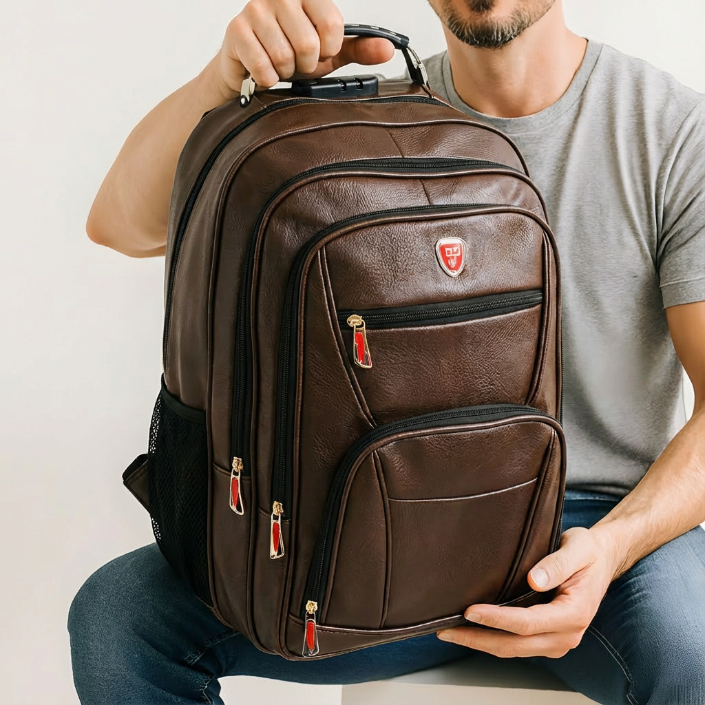 Mochila Masculina em Couro Sintético com Saída USB 💼⚡ Elegância, praticidade e segurança em um só produto! Ideal para quem busca estilo no dia a dia sem abrir mão da funcionalidade. Feita em couro sintético resistente, essa mochila é perfeita para trabalho, faculdade ou viagens rápidas. ✨ Destaques: - Material: Couro sintético premium - 📏 Dimensões: 50x35x32cm | Capacidade: 50L - 💻 Compartimento acolchoado para notebook - 💧 Bolsos laterais para garrafas - 🔌 Saída USB para carregar seus dispositivos com praticidade - 🛡 Zíperes reforçados e estrutura durável - 🎒 Design ergonômico que garante conforto mesmo em longos períodos 📦 Leve e resistente – pesa apenas 600g! Transforme sua rotina com organização e estilo! Adquira agora e sinta a diferença no seu dia a dia!