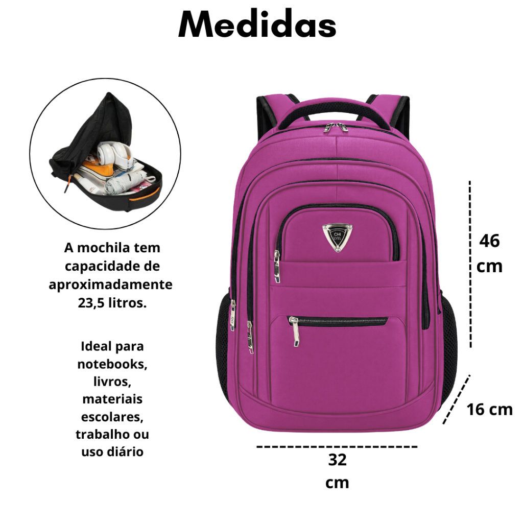 !!! ATENÇÃO !!! CADA MODELO DE MOCHILA É RETRATADO COM LETRAS, EXEMPLO: PRETO A. PRETO C E PRETO B, CADA LETRA SERÁ UM MODELO DE MOCHILA DIFERENTE, AS DIMENSÕES E CARACTERISTICAS PRINCIPAIS COMO ALÇAS ACOLCHOADAS, SÃO PRESENTES EM TODOS OS MODELOS!! MUDANDO APENAS ALGUNS DETALHES DE DESENHO E COSTURA DE UMA MOCHILA PARA A OUTRA. ✨ 📏 Dimensões: Altura: 46cm Comprimento: 32cm Largura: 16cm ✨🌟 Mochila Executiva Grande, Moderna e à Prova d'água!🌟 ✨ 💦Tecido impermeável de alta resistência! 🎒 Compatível com notebook. 💪 Divisórias internas organizadoras (documentos, gadgets, cabos)! 🛠️ Alça superior rígida, com cabo acolchoado, para transporte manual. 🎯 Bolsos laterais para garrafa ou guarda-chuva! 🔥 Estilo executivo discreto — ideal para trabalho ou estudo! *CASO NÃO SEJA ENVIADA UMA MENSAGEM ESCOLHENDO AS CORES EM PEDIDOS COM 2 PEÇAS OU MAIS, MANDAREMOS DE FORMA SORTIDA. *CASO NÃO TENHA A COR ESCOLHIDA NÓS ENVIAREMOS A COR MAIS SIMILAR POSSÍVEL. 🦋** Bem vindos a Luana Bolsas. Somos uma loja 100% on-line. Prontos para trazer os melhores produtos com alta qualidade e praticidade pra vocês clientes. Temos um ótimo e rápido atendimento, sempre a seu dispor.**🦋 Trabalhamos com postagem imediata, logo após a confirmação do Pagamento estaremos postando seu pedido. *Pedidos feitos na sexta a noite, sábado e domingo serão postados na segunda feira pela manhã 🦋---------------------------------------------------------------------------------🦋---------------------------------------------------------------------------------🦋