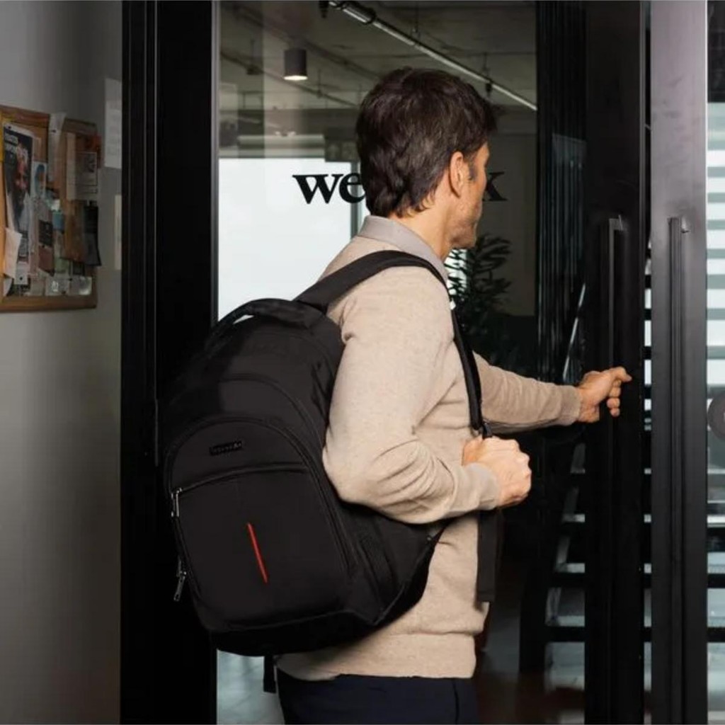 Mochila Masculina para Notebook Fusion Preta A Mochila Masculina Fusion é a parceira perfeita para o seu dia a dia. Prática e moderna, ela conta com diversos compartimentos, porta notebook, alça para encaixar a mala e muito mais. Principais Atributos: - Porta notebook - Bolsos laterias - Alça traseira para prender a mala - 3 bolsos frontais Compartimento para Notebook: Compartimento para Notebook Está mochila conta com porta notebook para você conseguir transportar seus equipamentos com mais segurança Especicações: Marca: Bagaggio Alça Carona: Alça Carona Com a Alça carona é possível prender a mochila na sua mala, facilitando o transporte. Material: Poliéster Gênero: Masculino Tamanho Mochilas: Mochila Grande Peso (kg): 0,62 kg Capacidade (L): 21 L Capacidade Mochila (L): 20 a 30 L Atributos: Para notebook Faixa Etária: Adulto Rodas: Sem Rodas Cor: Preto Marca: Bagaggio Dimensões: 47 x 31 x 20 cm 663: Tipo de Mochila: Tipo de Mochila Garantia: 3 meses