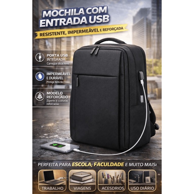 MOCHILA RESISTENTE A ÁGUA Perfeita para quem precisa de organização e praticidade, com discrição e segurança. Preço MAIS BARATO E DE QUALIDADE - CORRA PARA NÃO FICAR SEM ESPECIFICAÇÃO: MATERIAL: POLIÉSTER. Capacidade notebook: até 15.6" TAMANHO: 43x30x16CM CORES DISPONÍVEIS: PRETA E CINZA. PESO POR UNIDADE: 0,610gr Feita de Material semi-Impermeável; Material: Poliéster Marca: BNZ Com 2 compartimentos; Saída USB (CABO não incluso) Com saída para Fone de Ouvido ( CABO não incluso) Com compartimento para notebook de até 15.6" Divisórias internas para melhor organização do seu material Alças reforçadas, amoladas e com regulagem; Alça de mão reforçada; Costuras Reforçadass; Com suporte para encaixar em puxador de mala de rodinhas. Sinta-se seguro agora com seu material, adquirindo essa mochila supoer resistente. Itens Inclusos: 1 Mochila