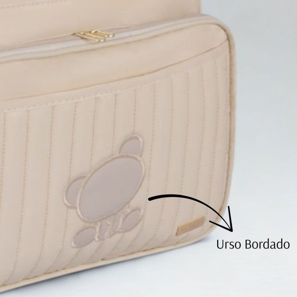 Mochila Maternidade Bege c/ Urso Bordado Bege