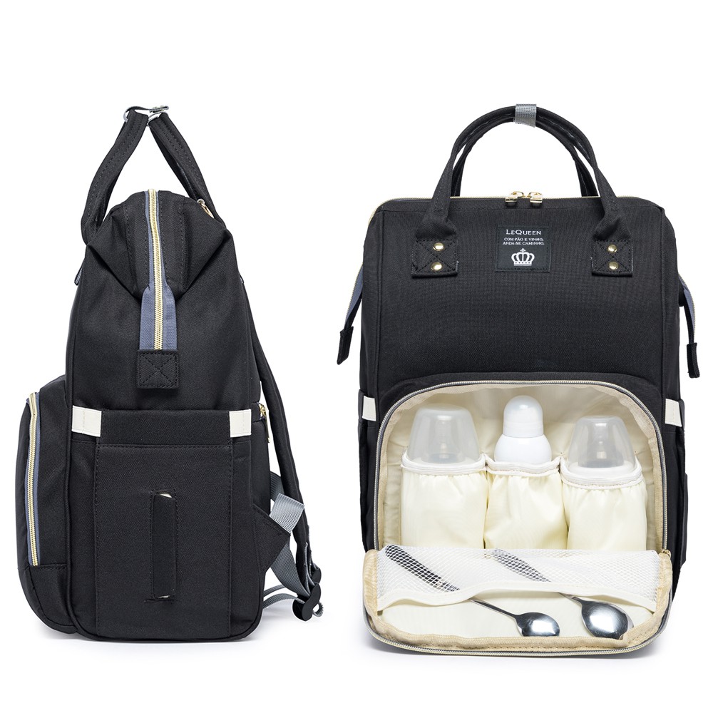 Mochila Maternidade Preta Lequeen Tradicional Multifuncional Resistente Bebê