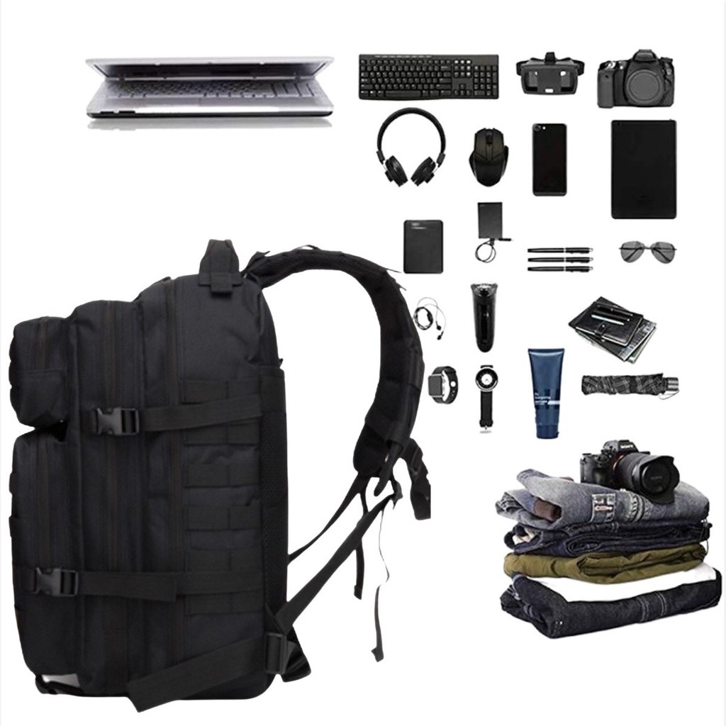 Estamos com o melhor preço na linha tática militar. Oque acontece após você realizar sua comprar conosco? Após você realizar a sua compra conosco já estaremos trabalhando para que seu pedido seja enviado o mas rápido possível, seu pedido passará por uma inspeção minuciosa para garantir que o produto chegue perfeito até você, toda a mochila é revisada antes do envio! Uma boa compra estar em não se arrepender dela, comprando conosco você tem 100% de satisfação sem arrependimento. O material de nossa mochila é excelente tecido 900d Mochila excelente, resistente com costura reforçada, feito de material Oxford 900d, com designer de velcro na parte de trás, para compartimento de hidratação de até 5L, possui vários compartimentos, exclusivo espaçoso com zíper, também contem pequenos bolsos que servirão para uma infinidades de acessórios, pegada de alça reforçada, com alças acolchoadas, confortável, acolchoada nas costa com fluxo de ar, conta também com vários fechos de engate rápido, zíperes laterais, compartimento para notebook de até 17 polegadas Descrição da mochila: Mochila material Oxford 900d Costura reforçada -capacidade 50l Altura 50cm Lateral 40cm Profundidade 30cm