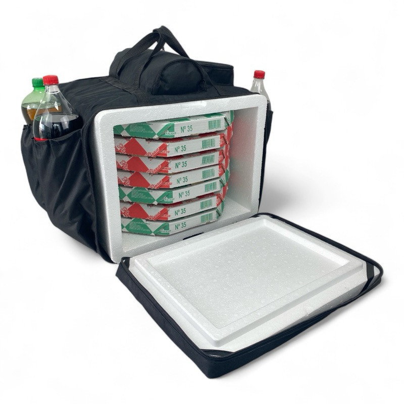 A mochila Bag é essencial para fazer o transporte de alimento, bebidas em geral, usado tanto para alimentos e bebidas quente ou geladas, pois ela acompanha isopor térmico, além da mochila ser de ótima qualidade sua alça é reforçada, o zíper resistente alem de ser impermeável. 1- mochila Bag, acompanha isopor de 45 litros, indicado para pizzas até 35cm. Características: * Parte interna: isopor branco ( Térmica) * Mochila em Nylon reforçado, com 5 bolsos para refrigerantes, cabe até 7 pizzas. * Frente com plástico, fecho com zíper, indicado para logomarca * Bolso com zíper para máquina de cartão * mochila impermeável Perguntas Frequentes: P: Acompanha caixa isopor, ou se trata apenas da mochila/ capa? R: Sim, produto completo, mochila + caixa isopor 45 L. P: As alças são reforçadas? R: Sim! as alças foram feitas para maior durabilidade. P: A mochila isopor é para quantos litros? R: Mochila isopor para 45 litros P: Quais são as medidas da mochila? R: Altura 35cm x Largura 45cm x Profundidade 42cm Envio imediato!!! ( exceto aos sábados, domingos e feriados) Obrigado e ótimas compras
