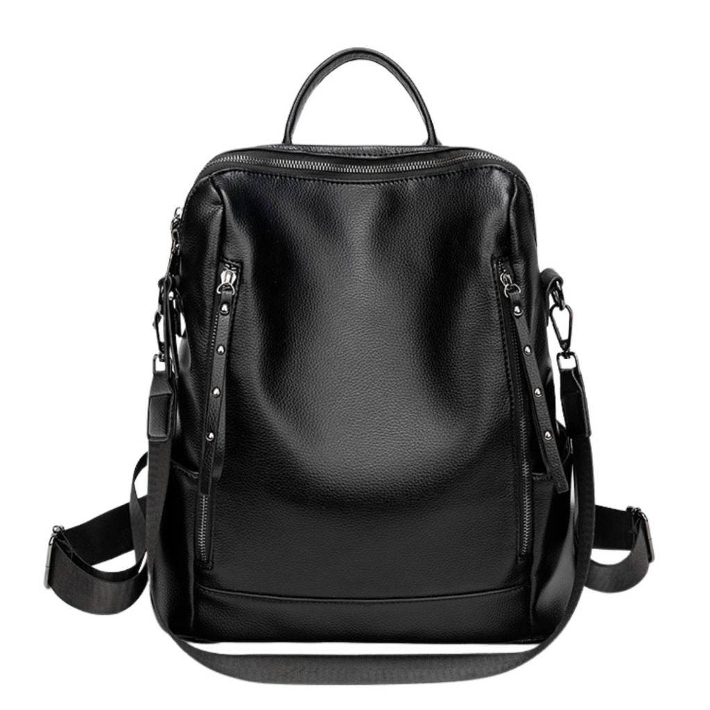 Mochila Feminina em Couro Soft - Design 3 em 1 Eleve seu look diário com uma peça que une luxo e funcionalidade. Com um acabamento texturizado e design clean, esta mochila é perfeita tanto para o ambiente corporativo quanto para viagens e lazer. Multifuncionalidade Real: Use como mochila de costas, bolsa de mão (alça superior reforçada) ou bolsa de ombro com a alça transversal removível inclusa. Detalhes Premium: Zíperes metálicos com puxadores alongados e detalhes em rebites laterais que trazem um toque moderno. Organização Inteligente: Possui bolsos laterais externos para itens de acesso rápido e dois bolsos verticais frontais com zíper. Material: Confeccionada em material sintético , resistente e fácil de limpar. Medidas aproximadas: largura x altura x profundidade 32 x 36 x 15 cm