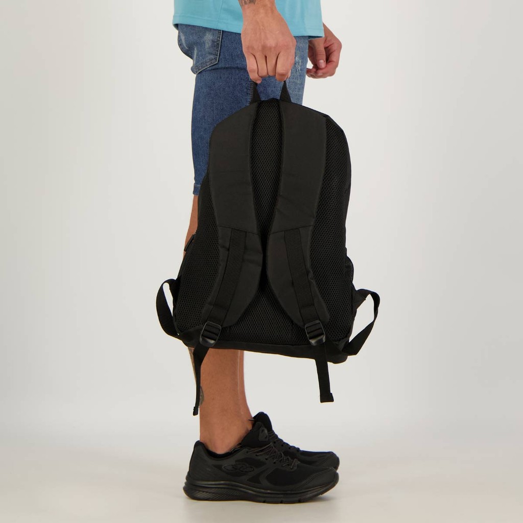 Dimensões aproximadas (A x L x P): 44 x 31 x 12 cmAlças: Uma de mão e duas para os ombrosAbertura/fechamento: Zíper bidirecionalCompartimento: Um principal amploBolsos: Dois dianteiros, com zíperComposição: 100% PoliésterCor predominante: PretaPeso aproximado: 440 gPorta-notebook: SimPorta-garrafas: SimCapacidade/ Volume: 16 LOrigem: ImportadaGênero: UnissexTamanho único