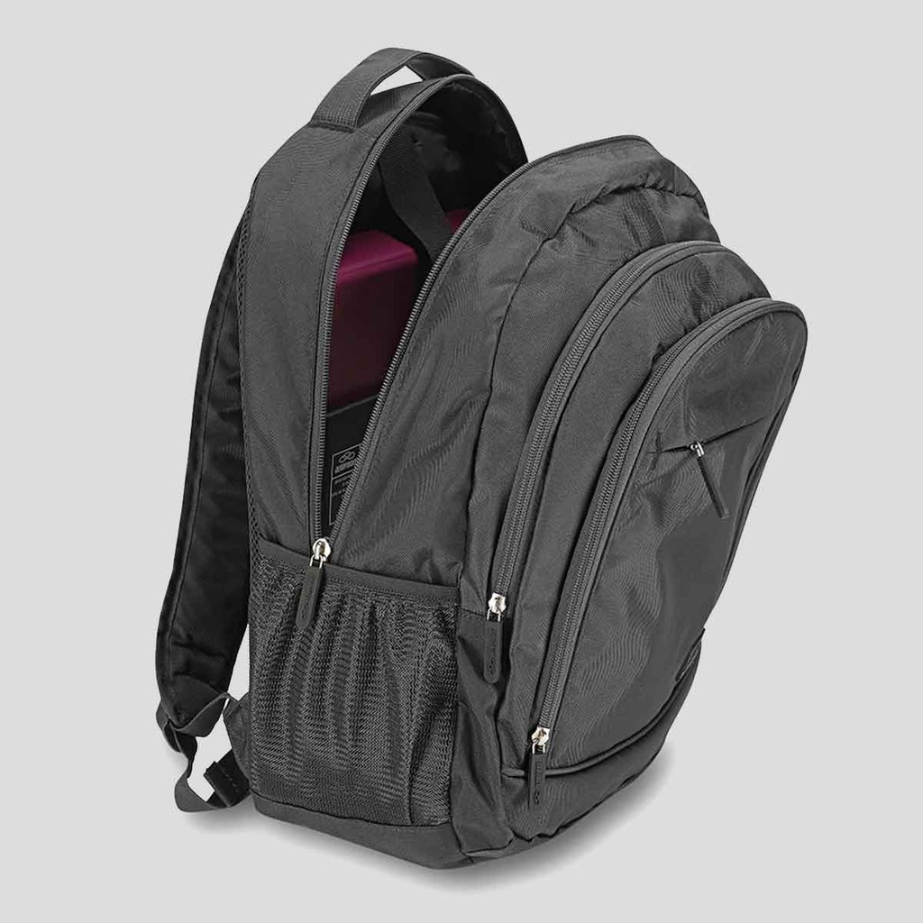 Dimensões aproximadas (A x L x P): 46 x 31 x 15 cm Alças: Uma de mão e duas para os ombros Abertura/fechamento: Zíper bidirecional Compartimento: Um principal amplo Bolsos: Três frontais, com zíper Composição: 100% Poliéster Cor predominante: Cinza Capacidade/ Volume: 21 L Peso aproximado: 500g Porta-notebook: Sim Porta-garrafas: Sim Logo: Emborrachado Origem: Importado Gênero: Unissex Tamanho único