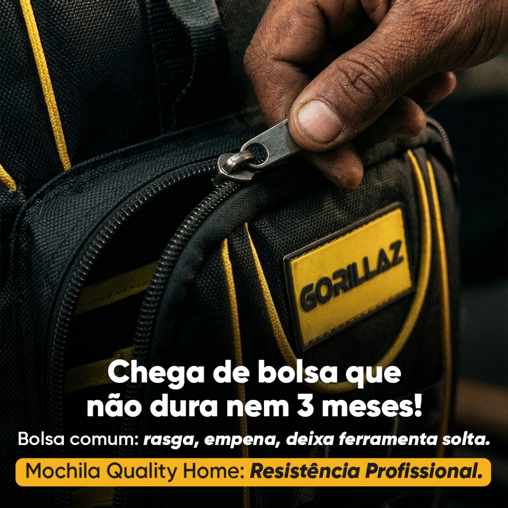 OLÁ BEM VINDOS AO GRUPO QUALITY HOME PRODUTO DISPONÍVEL A PRONTA ENTREGA !!!! MOCHILA PARA FERRAMENTA PREMIUM OXFORD 1680D BASE EMBORRACHADA REFORÇADA Uma bolsa para ferramentas com base emborrachada e tecido Oxford 1680D reforçado oferece uma excelente proteção para suas ferramentas, além de ser durável e resistente ao desgaste. Com 20 bolsos e 27 alças, oferece amplo espaço para armazenamento e organização de uma variedade de ferramentas, desde chaves de fenda até alicates e martelos. A base emborrachada proporciona estabilidade e proteção adicional contra impactos, enquanto o tecido Oxford 1680D reforçado garante que a bolsa possa lidar com o uso diário e condições de trabalho ásperas. Essa combinação de recursos faz dela uma escolha ideal para profissionais da construção, carpinteiros, eletricistas e outros trabalhadores que precisam transportar e proteger suas ferramentas no local de trabalho. - SUPORTA ATÉ 35 KILOS