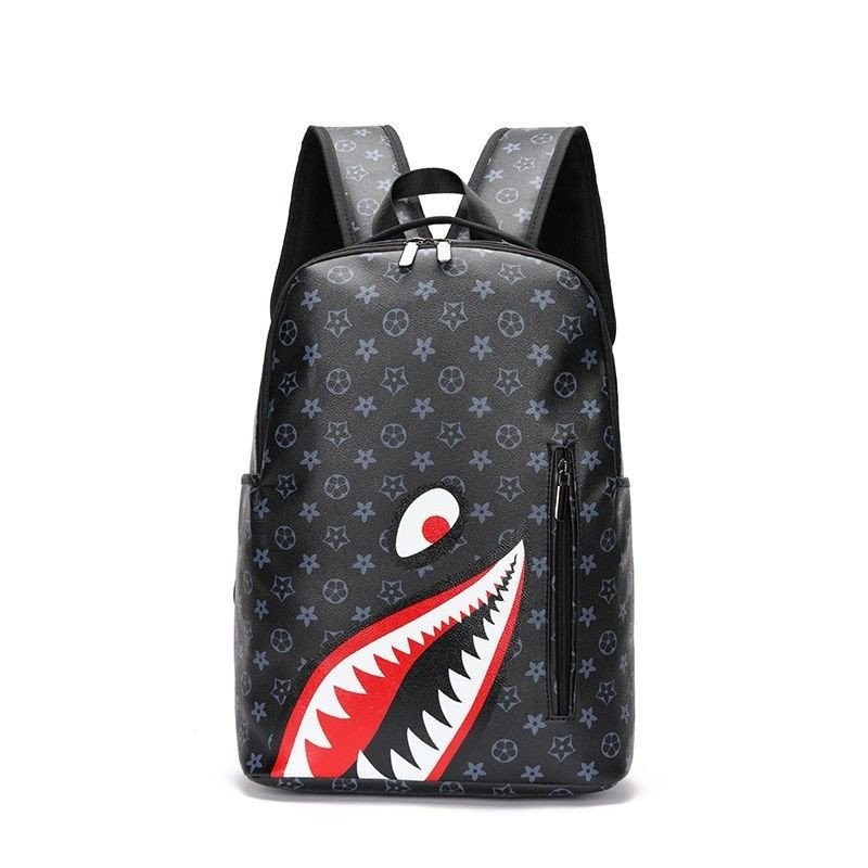 Mochila para Homens Nova Impressão de Dentes de Boca de Tubarão para Estudantes do Ensino Médio e Moda de Viagem de Laze