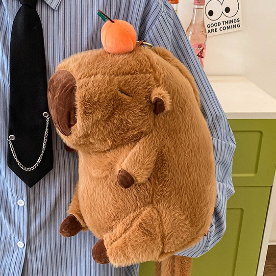 Mochila Pelúcia Divertida de Capivara - Acessório Fofo em Formato de Animal para Escola e Passeios