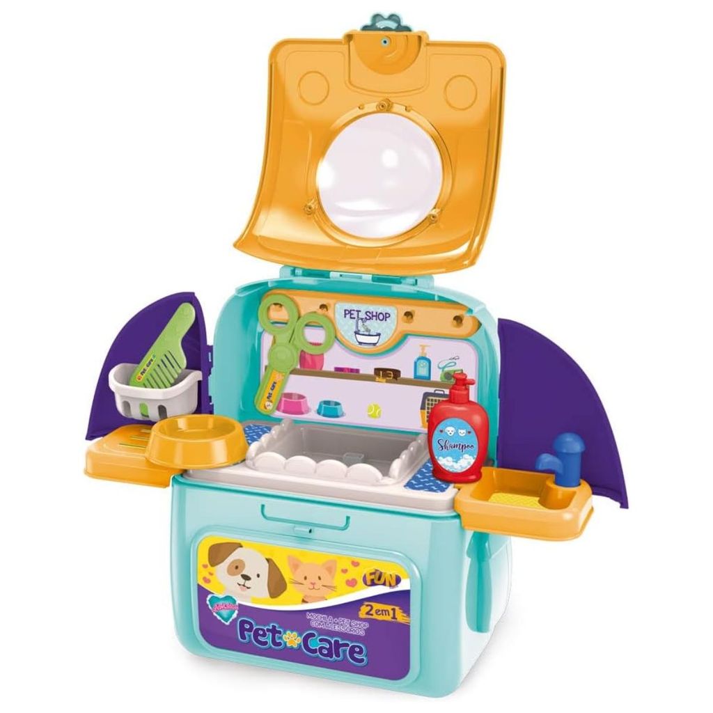 DESCRIÇÃO DO PRODUTO Campo, praia ou até mesmo na casa da vovó! Não importa onde você esteja! Leve sua mochila pet shop de brinquedo e dê aquele banho de beleza e cuidado que seu bichinho de estimação tanto merece. Com a Fun Adotados Pet Care 2 em 1 a praticidade e a diversão andam juntas! Fechada é uma moderna mochila que pode ser transportada para onde você quiser! Quando aberta a brincadeira começa de verdade! Um pet shop completo está à sua disposição para cuidar do seu gatinho ou cachorrinho com direito a banho, tosa, perfume e alimentação. CARACTERÍSTICAS TÉCNICAS Conteúdo da Embalagem: 01 Mochila Pet com acessórios Dimensões Aproximadas do Produto: 26 x 20 x 14 cm (Altura x Largura x Comprimento/Profundidade) Dimensões Aproximadas da Embalagem: 16 x 22 x 28 cm (Altura x Largura x Comprimento/Profundidade) Material/Composição: Plástico, Pelúcia Idade Mínima Recomendada: A partir de 3 anos Participantes: A partir de 1 pessoa Alimentação: Não se aplica Marca: FUN Referência: F0058-1 Garantia: 3 meses contra defeitos de fabricação Outras informações: As cores podem variar entre as imagens mostradas acima e o produto. Imagens meramente ilustrativas. Aviso: As informações e imagens divulgadas são de total responsabilidade do fabricante/fornecedor. Produto 100% original, lacrado e disponível a pronta entrega para todo Brasil! APROVADO PELO INMETRO