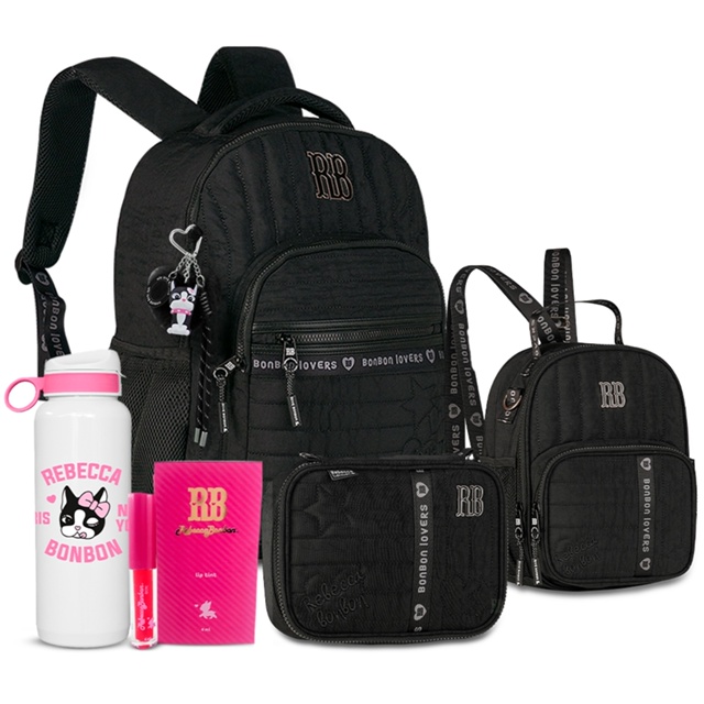 Mochila Rebecca Bonbon Escolar Juvenil Com Estojo Box Grande Lancheira Caderno RB Oficial Anti-Furto