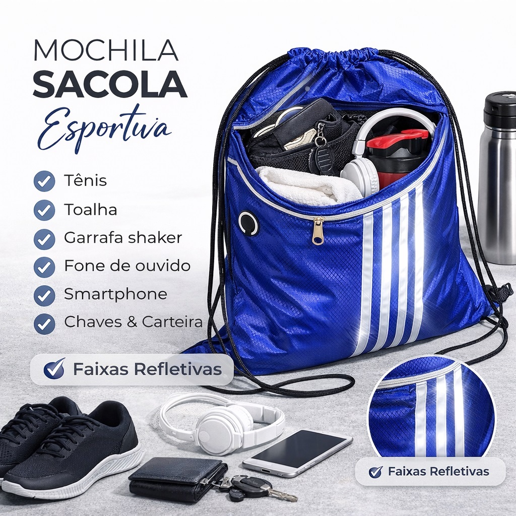 Mochila Sacola Esportiva Leve Resistente Unissex Academia Treino Dia a Dia Com Zíper