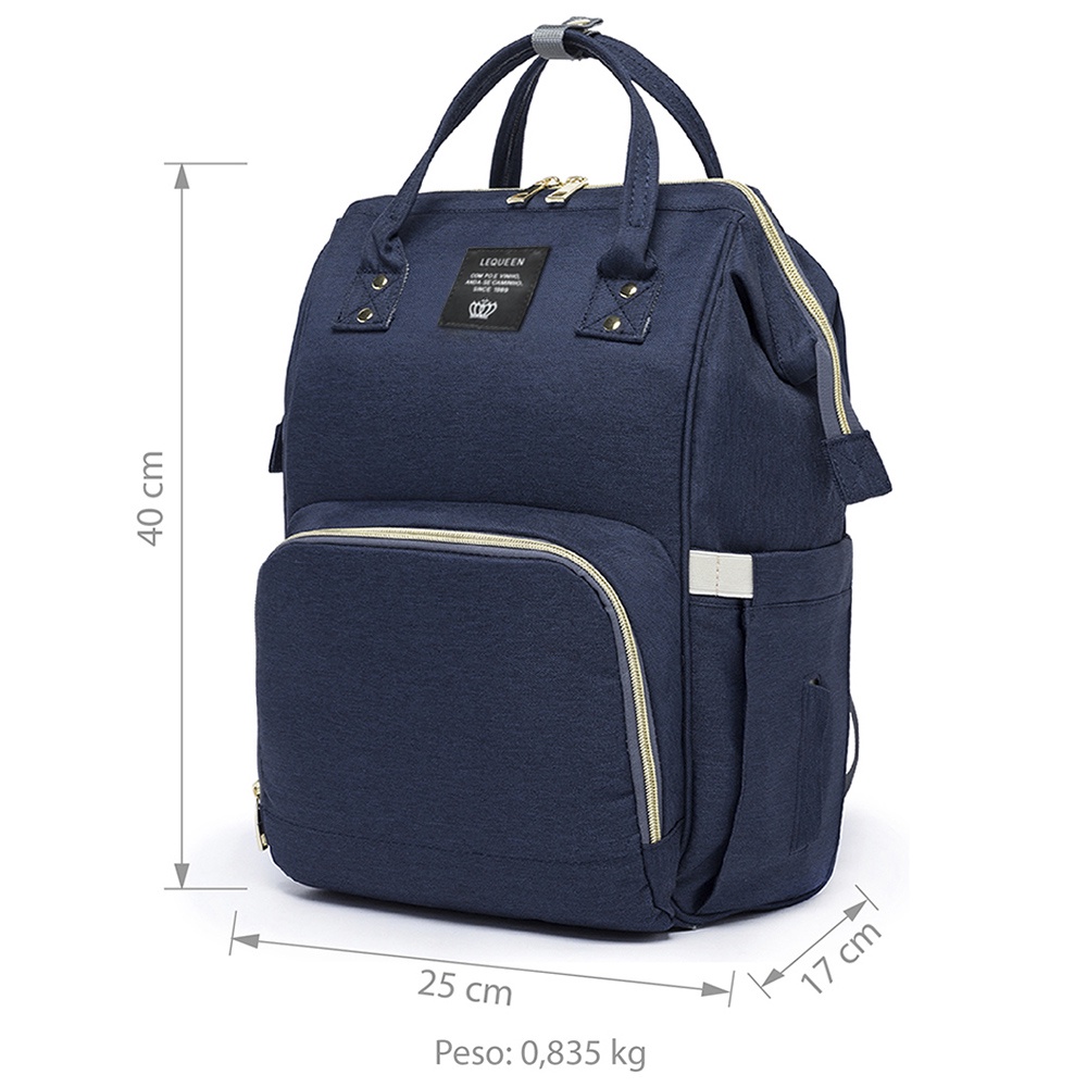 Características: - Marca: Lequeen - Medidas (AxLxP): 40x25x17cm - Peso: 0,835 kg - Capacidade: 17L - Confeccionada em tecido 100% Oxford de alta resistência. - Ganchos e porta mamadeira avulso. - Possui bolso frontal com compartimento para mamadeiras térmico. - Bolsos laterais (armazena garrafa d'agua). - Bolso lateral com fácil acesso para lenços umedecidos. - Possui bolso exclusivo para roupas molhadas. - Acesso ao fundo da mochila através do bolso estratégico sem necessidade de retirar tudo de dentro ou de cima. - Alças de costas reguláveis e acolchoadas tornando a mochila confortável (Padded Shoulder Straps). - Alça de mão reforçada. - Zíper em metal dourado. - Amplo espaço interno. - Divisórias internas. - Logo personalizado. - Tratamento interno antibacteriano. - Fecho de travamento para junção das alças de mão. - Tecido com proteção impermeável. ______________________________________ Esta bolsa mochila possui inúmeros bolsos internos e externos (Multi-pocket) - 6 x bolsos de armazenamento (interior) - 5 x bolsos externos - 3 x bolsos para mamadeira (frente) - 1 x bolso porta lenço umedecido (lateral) - 1 x bolso para garrafa de água (lateral) ______________________________________ Itens inclusos: 1x mochila. 1x porta mamadeira. 2x ganchos para carrinho de bebê. ______________________________________ Indicações de uso: - Mochila para fazer compras - Mochila para viajar - Mochila para passear - Pode ser usada como Mochila ou Bolsa ______________________________________ Cuidados de conservação: - Evite carregar excesso de peso. - Embalar objetos com cantos vivos cortantes. - Para limpeza, utilize apenas pano úmido ou esponja macia e sabão neutro. - Não utilizar nenhum produto químico para limpeza. - Conservar em local seco e arejado.