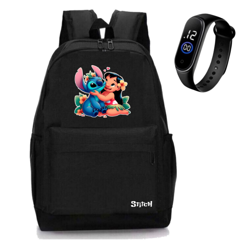 Mochila Stitch em Nylon Reforçado Impermeável + Relógio