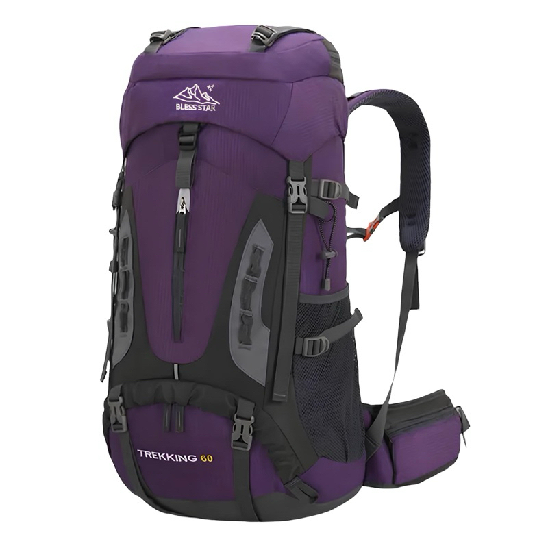 Mochila masculina feminina trilha camping acampamento caminhada viagem confort com capacidade aproximada de 60L litros. Composta por 1 compartimento principal com fechamento em cordão ajustável, 1 divisória interna para notebook, 1 compartimento interno com zíper, 5 compartimentos externos com zíper e 1 sem zíper, além de trava peitoral, trava abdominal, dois bolsos laterais e saída para mangueira da squeeze. PRINCIPAIS CARACTERÍSTICAS DA MOCHILA: -Feito de poliéster, resistente à água, resistente ao rasgo, leve e durável. -Mochila de escalada 60l, compartimento principal espaçoso e numerosos bolsos com grande capacidade. -Ultraleve, pesando apenas 1,150kg. -Compartimento para sapatos separados, evitando que os outros itens da mochila sejam sujos, super conveniente e prático. -Alças de ombro acolchoadas ergonômicas e suporte para as costas para melhor ventilação e carga confortável. -Saída para mangueira da squeeze. -Divisória interna para notebook. -Ajustes anatômicos. - Alça para as costas regulável. Medidas Aproximadas: - Altura 68cm- Largura 32cm- Profundidade 24cm -Capacidade aproximada 60 litros Dicas de Limpeza: - Não use abrasivos, solventes ou agentes químicos na limpeza de seu produto. Cuidados: - Guarde em um local seco e arejado. - Evite colocar excesso de peso no produto para não forçar os zíperes e costuras. - Proteja os objetos cortantes e/ou pontiagudos evitando o contato direto com o produto OBSERVAÇÃO: VERIFICAMOS TODOS OS ZÍPERES E COSTURAS ANTES DE ENVIAR. PRODUTO NOVO. PRODUTO ORIGINAL MARCA BLESS STAR