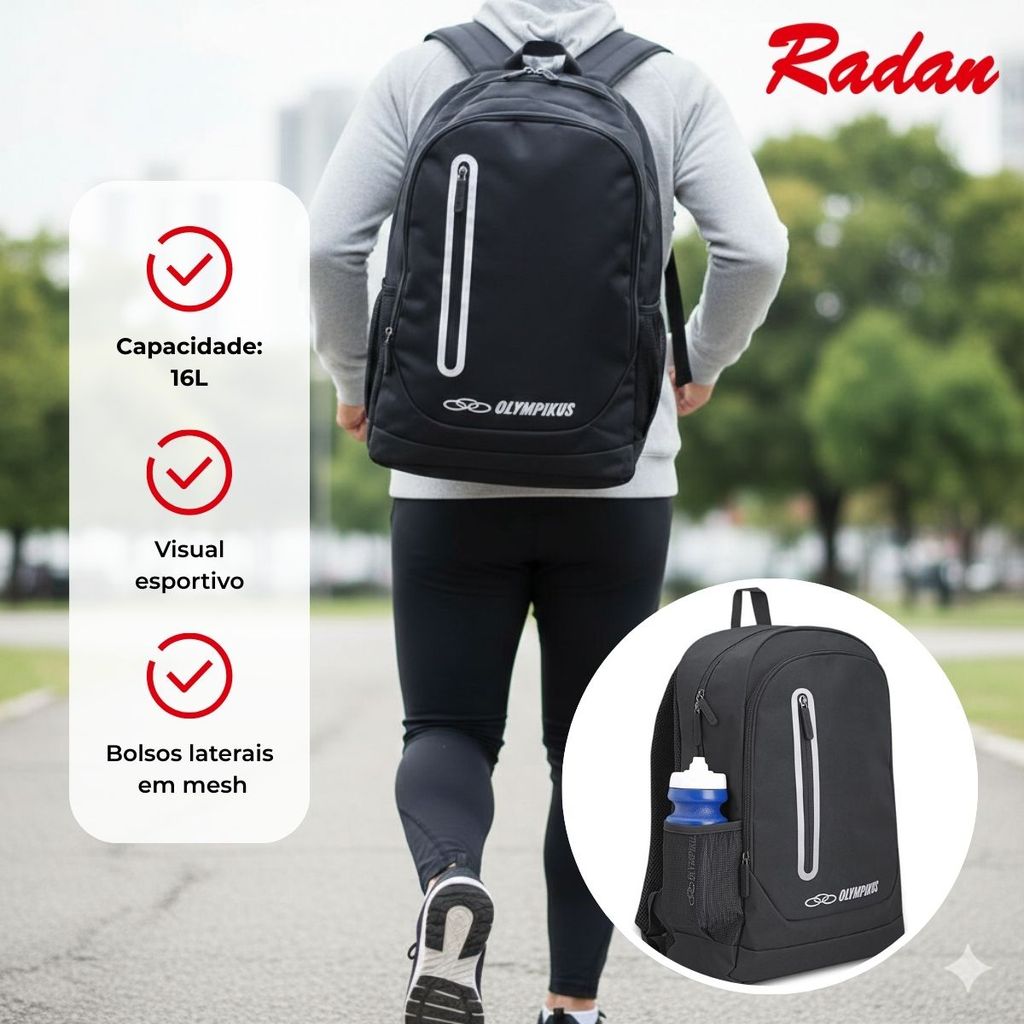 A Mochila Unissex Olympikus Braze Mesh Notebook Preto/Prata foi desenvolvida para acompanhar a rotina com praticidade, resistência e visual esportivo moderno. Versátil, é ideal para o dia a dia, treinos, estudos ou deslocamentos urbanos. Confeccionada em tecido 100% poliéster, a Mochila Olympikus Braze oferece leveza e durabilidade para o uso diário. Possui dois compartimentos grandes, sendo o principal com espaço dedicado para notebook, garantindo organização e segurança para seus pertences. O modelo conta com bolsos laterais em mesh, ideais para garrafas de água ou itens pequenos, além de bolso frontal com fechamento em zíper e acabamento em hotmelt tape, que reforça a proteção e o design. Os puxadores emborrachados com logo em alto relevo facilitam a abertura. As alças reguláveis permitem ajuste firme e confortável ao corpo, enquanto a alça de mão proporciona praticidade no transporte. O destaque fica por conta da tecnologia refletiva, que aumenta a visibilidade em ambientes com pouca iluminação, trazendo mais segurança para atividades esportivas e uso urbano. As Lojas Radan contam com 10 lojas físicas no Rio Grande do Sul, oferecendo esta e uma grande variedade de produtos e marcas de calçados e vestuário feminino, masculino, infantil e esportivo. Compre online com entrega rápida para todo o Brasil ou em uma de nossas lojas físicas, aproveitando nossa experiência e adquirindo produtos de qualidade. Aproveite! Produto de autenticidade garantida vendido pela Lojas Radan. A cor do produto nas fotos pode sofrer alteração em decorrência do uso do flash ou da configuração do seu monitor. Características: Nome do produto: Mochila Unissex Olympikus Braze Mesh Notebook Preto/Prata Modelo: OIWB221802 Indicado: Dia a dia, esportivo Composição: 100% Poliéster Fechamento: Zíper Compartimentos: Dois compartimentos principais Compartimento interno para notebook Bolsos: Bolsos laterais em mesh Bolso frontal com zíper e acabamento hotmelt tape Alças: Reguláveis + alça de mão Tecnologia: Refletiva (aumenta a visibilidade em ambientes com pouca iluminação) Diferencial: Leve, resistente, funcional e com detalhes refletivos Tamanho: Único Peso do produto: 460g Produto Original: Autenticidade garantida pelas Lojas Radan.