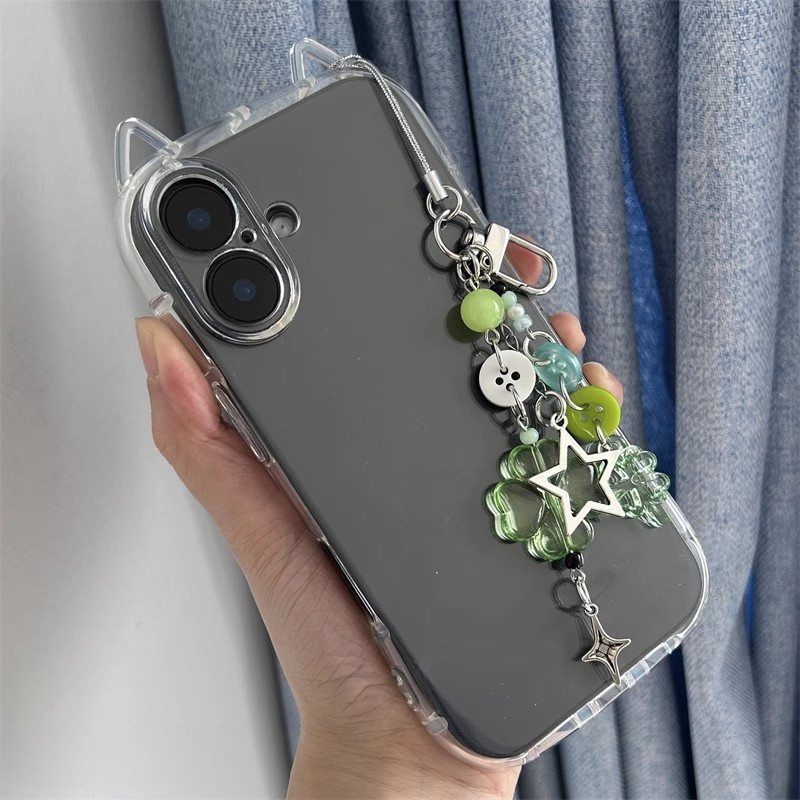 Moda 3D Bonito Orelhas De Gato Capa De Telefone Transparente + Estrela Trevo De Quatro Folhas Chaveiro Para iPhone 17 vale a pena?