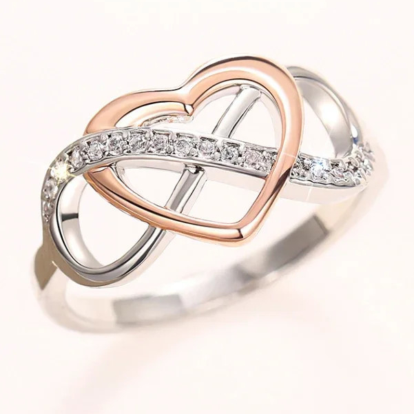 Moda 925 Prata Único Infinito E Coração Projetado Anéis Para Mulheres Em Amor Brilhante Dedo Acessório Chique Jóias