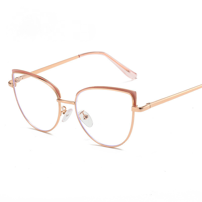 Moda Armações De Metal Olho De Gato Anti Luz Azul Óculos Feminino Ópticos Quadro De Computador